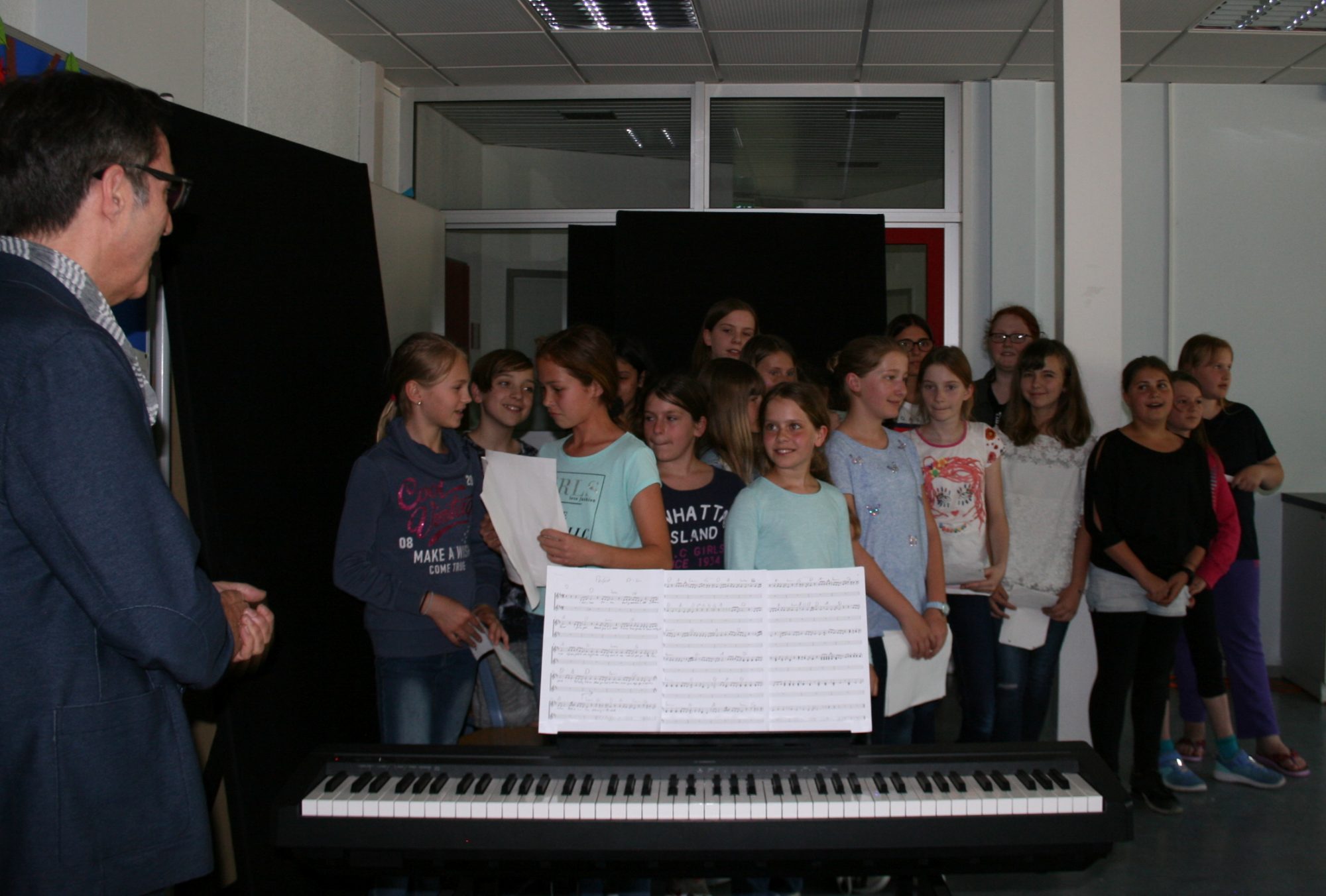 Nach einer musikalischen Darbietung des Orientierungsstufen-Chors, welcher gesanglich die Frage „Einer von 80 Millionen – Wie hast du uns gefunden?“ stellte, ergriff Pellkofer selbst das Wort: „Warum stehe ich hier?“ – Eine Begründung sieht er in seinen Mutterstadter Wurzeln und in der spannenden Entwicklung der Schullandschaft nach seiner eigenen Schulzeit in der Gemeinde. Darüber hinaus habe er nach seinem Referendariat an verschiedenen Gesamtschulen gearbeitet, unterschiedliche Funktionen innerhalb der Schulleitung ausgeübt, die ihn zum überzeugten Anhänger der Schulart IGS gemacht hätten. Besonders prägend seien für ihn die positive Atmosphäre an den Teamschulen, der Gemeinschaftssinn, die Teamarbeit selbst und die Erfahrung, dass alle an einem Strang ziehen, gewesen. Als Schulleiter sei es ihm wichtig, den Lehrkräften Verantwortung zu übergeben, um ihnen Freiraum zum Gestalten zu überlassen, denn Gestalten sei eine Sinn gebende und Zufriedenheit bringende Tätigkeit.