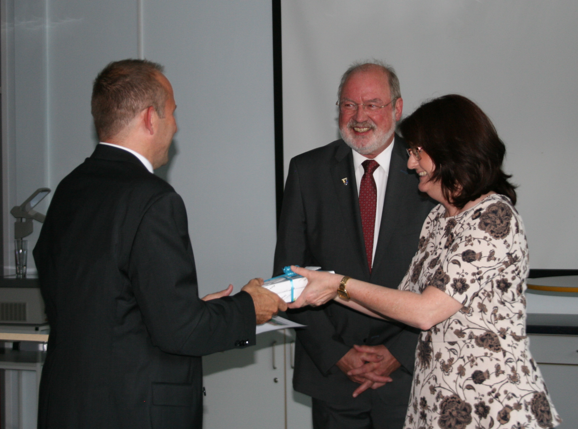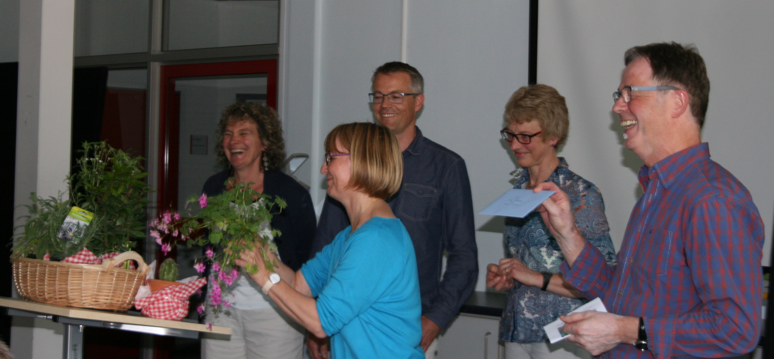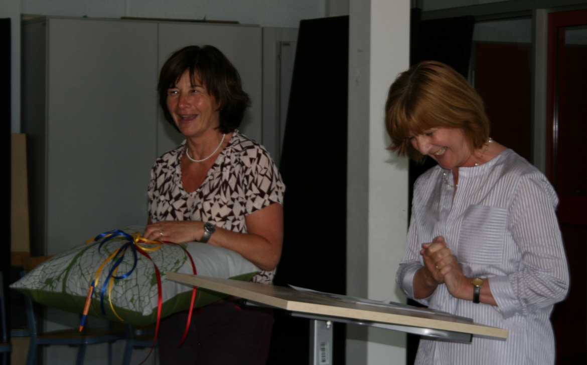 Für das Schulleitungsteam begrüßte die Didaktische Koordinatorin Petra Ebeling-Grabicki den neuen Direktor, der sich der Unterstützung des Schulleitungs- und Verwaltungsteams sicher sein könne. Als Begrüßungsgeschenk für das mit reichlich Grünpflanzen ausgestattete Zimmer – da erkennt man den Biologen in ihm – überreichte sie ein dazu passendes „Grünes Kissen“, um den Chefsessel etwas bequemer auszustatten, denn man brauche manchmal ausdauerndes Sitzfleisch oder etwas, was einem den Rücken stärke.