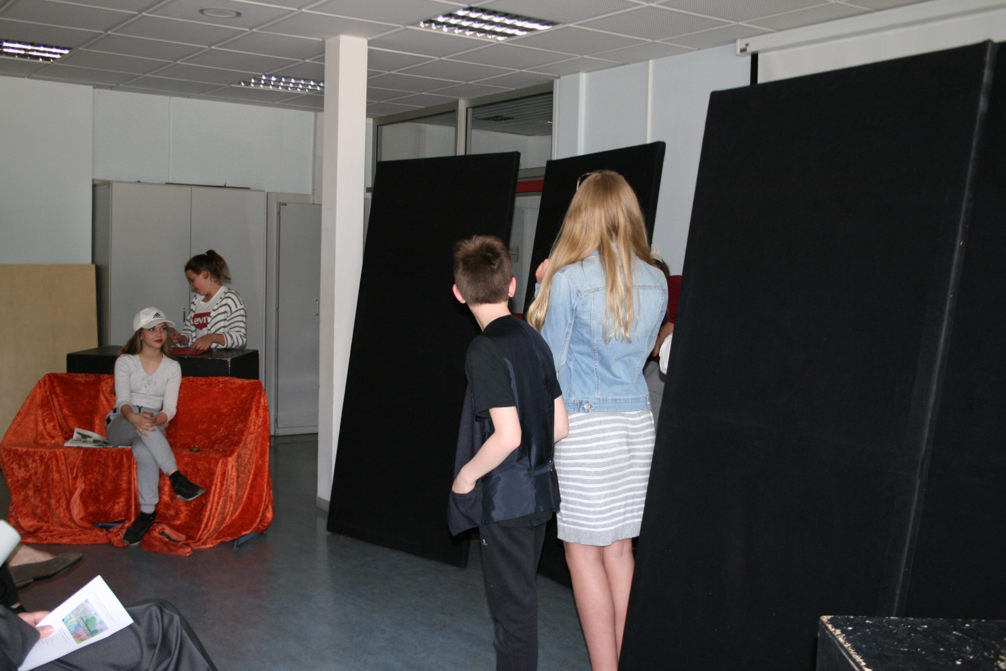 Die Feierstunde wurde auf unterhaltsame Weise von Schülerinnen und Schülern des Wahlpflichtfaches Darstellendes Spiel aus dem Jahrgang 7 eröffnet. In einer szenischen Darstellung zappte sich eine Familie durch die Fernsehprogramme und landete dabei immer wieder bei der Life-Übertagung der Amtseinführung des neuen IGS-Schulleiters aus Mutterstadt.