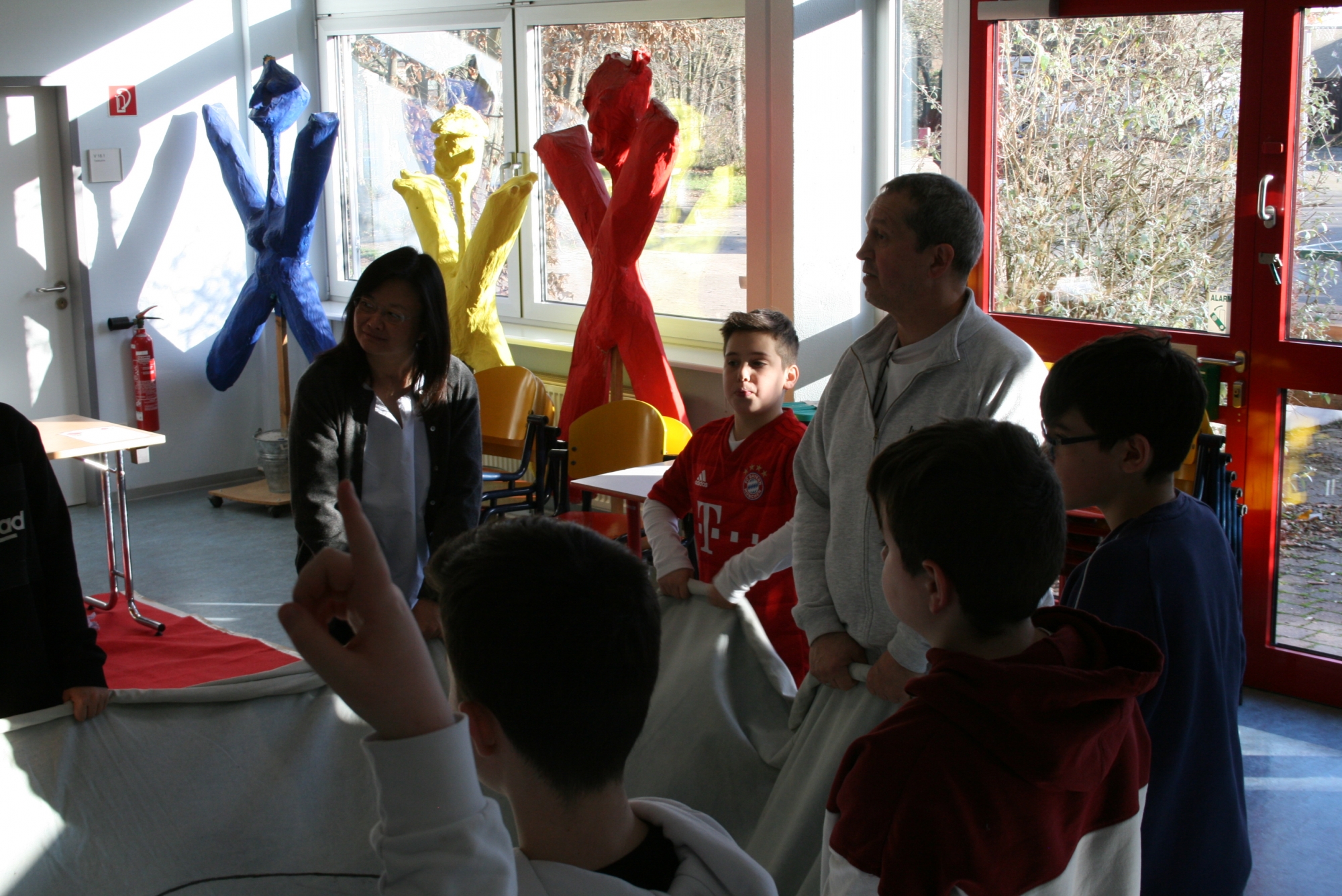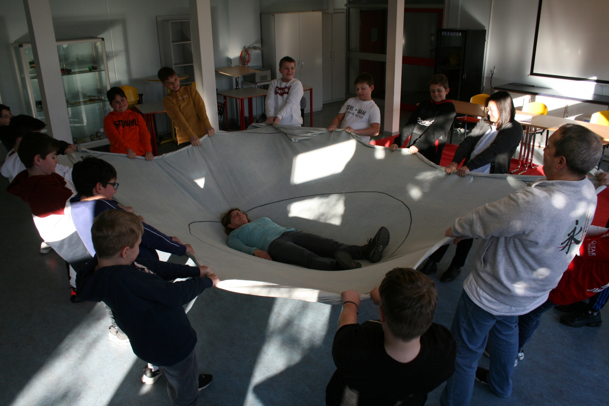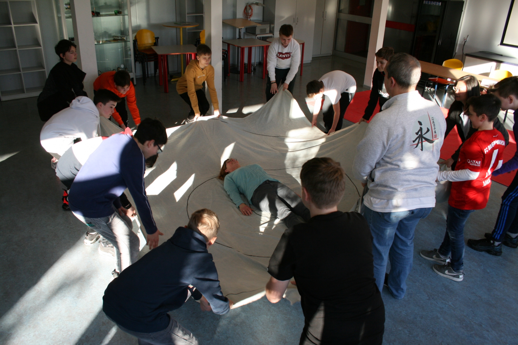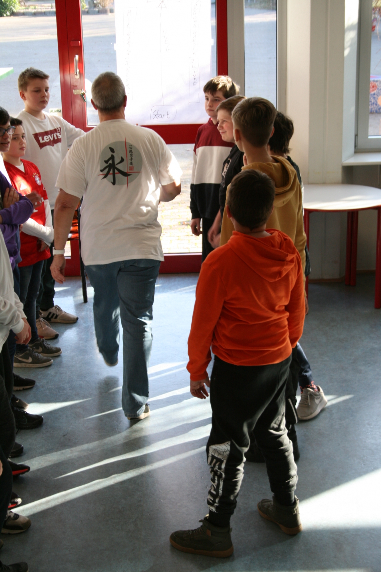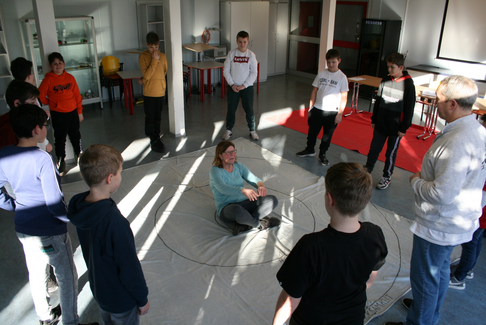 Am 04.02.2020 machten die Mädchen der 6. d mit Frau Anke Thomasky (Wen-Do* Trainerin) von 8-16 Uhr einen Selbstbehauptungskurs in der Sporthalle. Zuerst haben sich alle in einer Namensrunde vorgestellt. Im Anschluss daran haben sich alle in einem Kreis versammelt und sich 2 Bälle und ein Kuscheltier entweder normal zugeworfen, gekickt oder über einen Bodenpass zugeworfen. Als nächstes haben sie ein Spiel gespielt, bei dem sie Zusammenhalt lernen sollten. Zwischen durch gab es immer wieder kleine Pausen, in denen viel erzählt und gelacht wurde. Frau Thomasky machte mit den Schülerinnen viele Rollenspiele und erklärte genau, was sie tun können, wenn ihnen jeamand zu nahe kommt oder etwas Gemeines über sie sagt. Dazu haben sie auch noch ein anderes Spiel gespielt, bei dem es darum geht laut und deutlich: „STOP!“, zu sagen. Später übten alle wie man mit lautem Kampfschrei richtig in eine Pratze haut. Mit Kampfschrei hat man nämlich 20% mehr Kraft. Dann haben alle ein 15mm dickes Holzbrett entweder mit der Hand zerschlagen oder mit dem Fuß zertreten. Frau Thomasky zerteilte ein Brett mit dem Ellenbogen. Obwohl viele Schülerinnen Angst davor hatten, haben es alle geschafft. Dadurch sollten sie lernen sich selbst mehr zuzutrauen. In der Schlussrunde durften alle sagen, was ihnen am besten gefallen hat und wie sie sich nach dem Kurs fühlen. Alle meinten, sie seien jetzt viel mutiger und selbstbewusster als vorher.