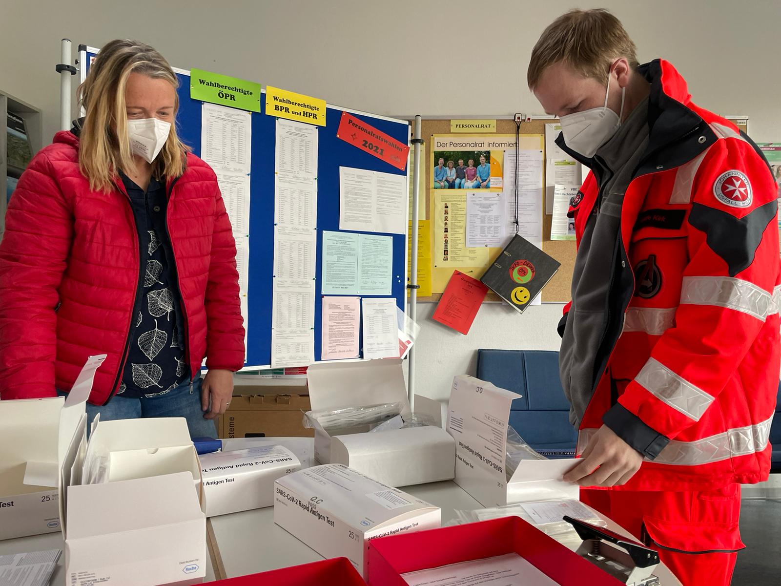 Herr Dieter von den Johannitern Ludwigshafen unterstützte uns heute beim Auftakt unserer Selbsttestungen.