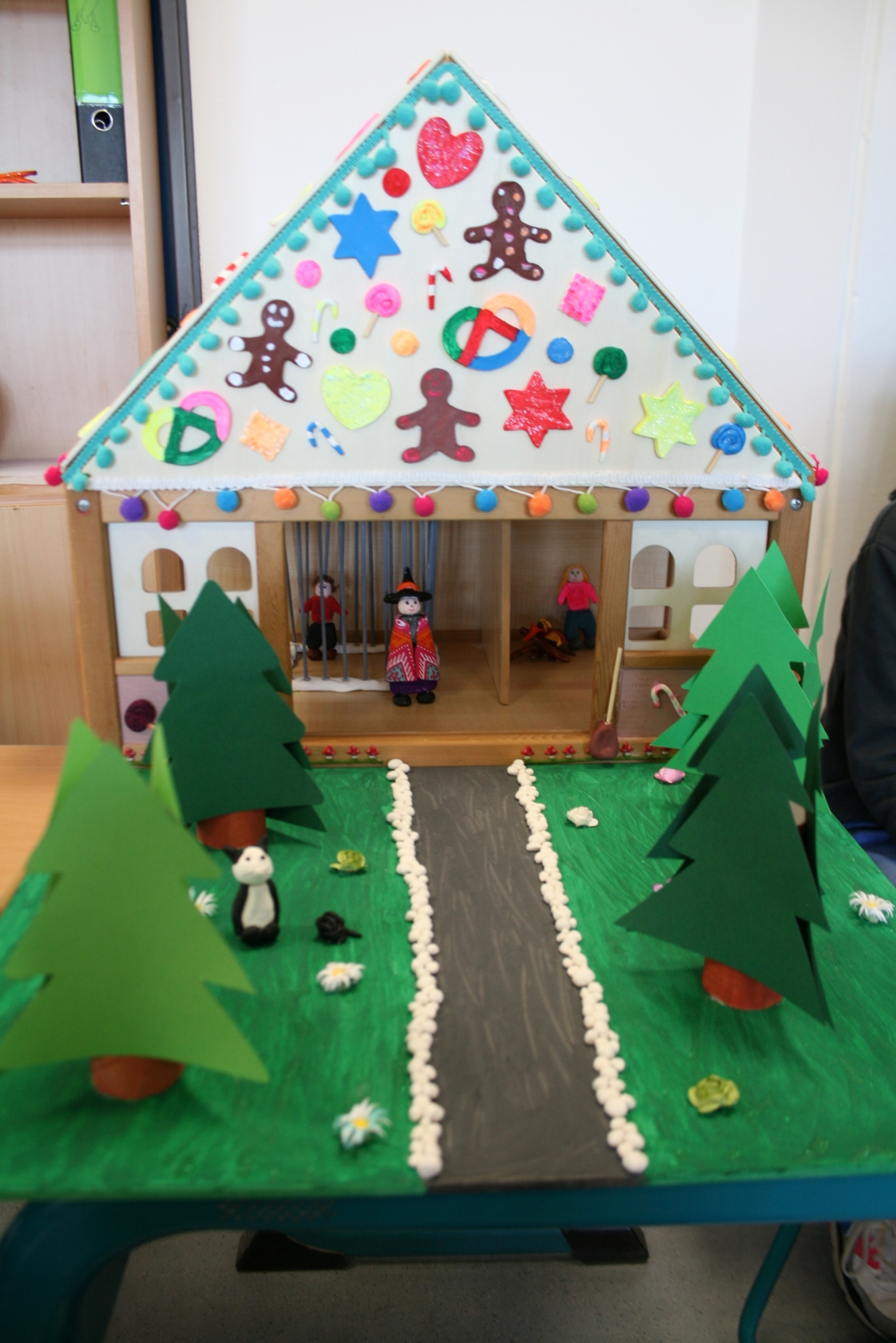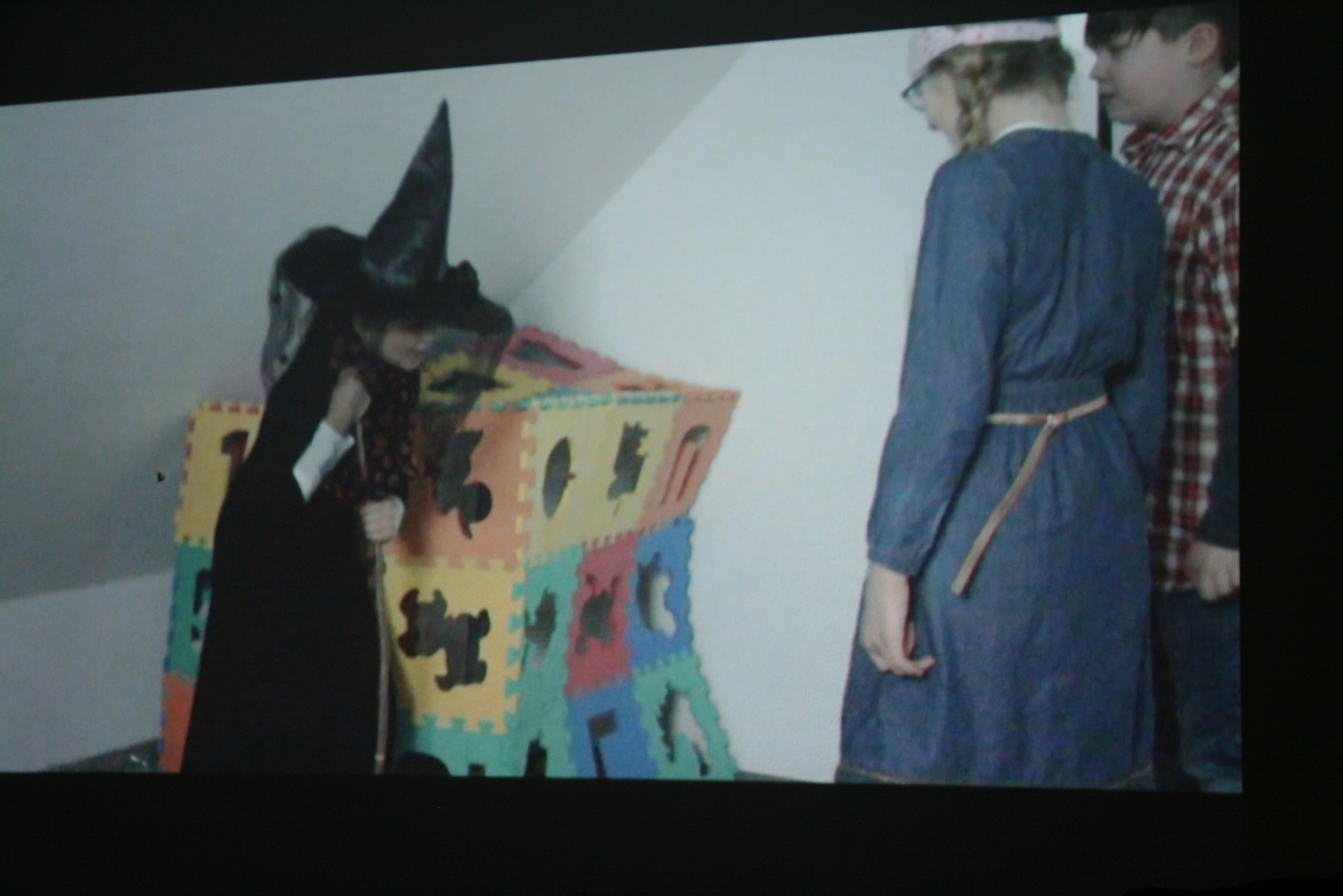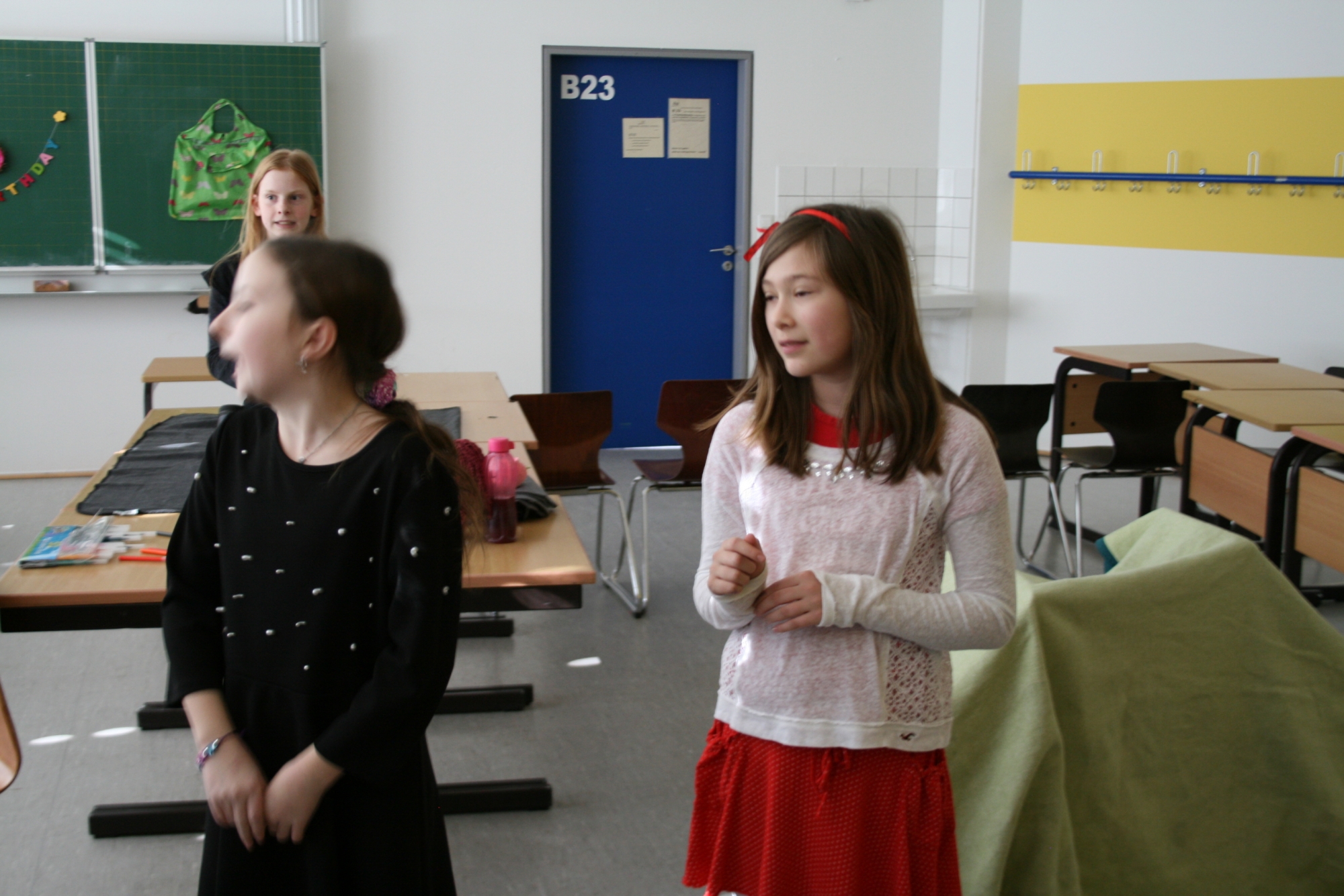 Eine Gruppe der 5b hatte sich einem Videodreh gewidmet zu Hänsel und Gretel. Nicht nur in der Schule wurde gedreht, sondern auch im heimischen Wohnzimmer und auf dem Spielplatz, wo das Haus der Hexe stand. Sehr viele kreative Ideen steckten dahinter.