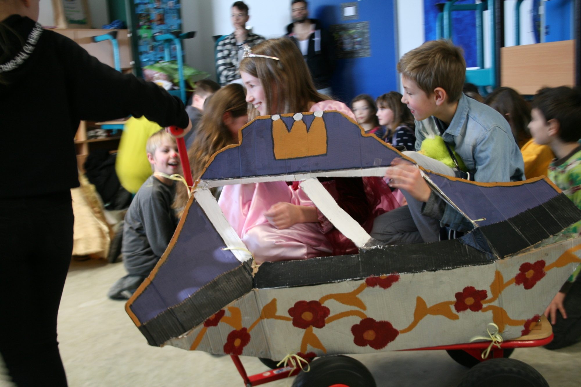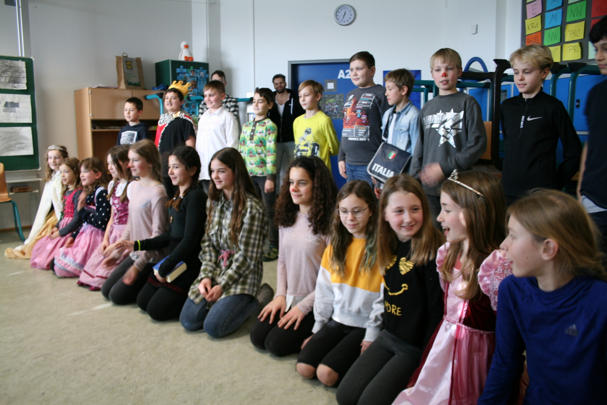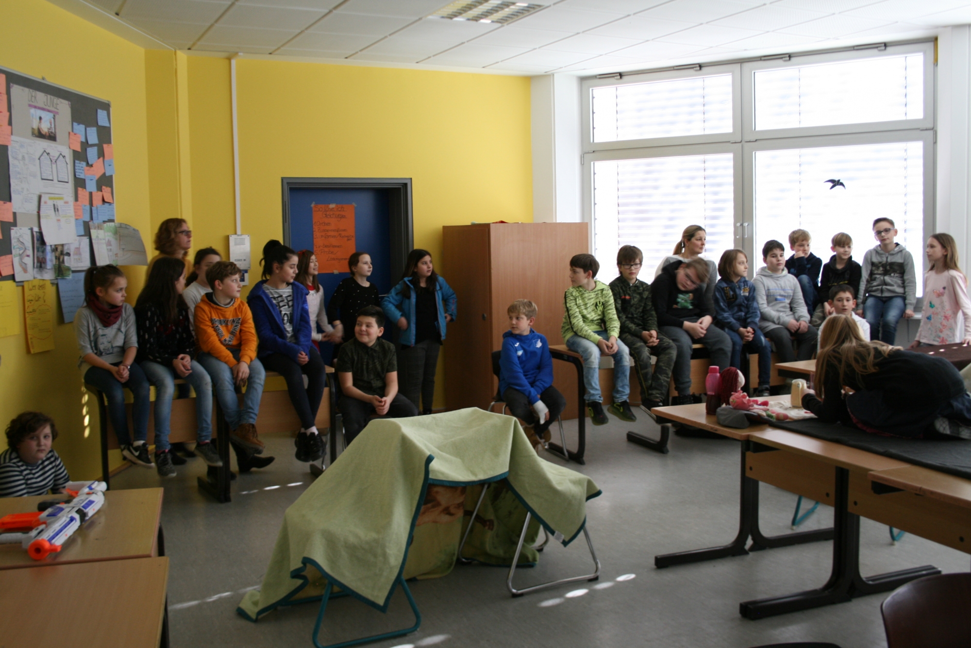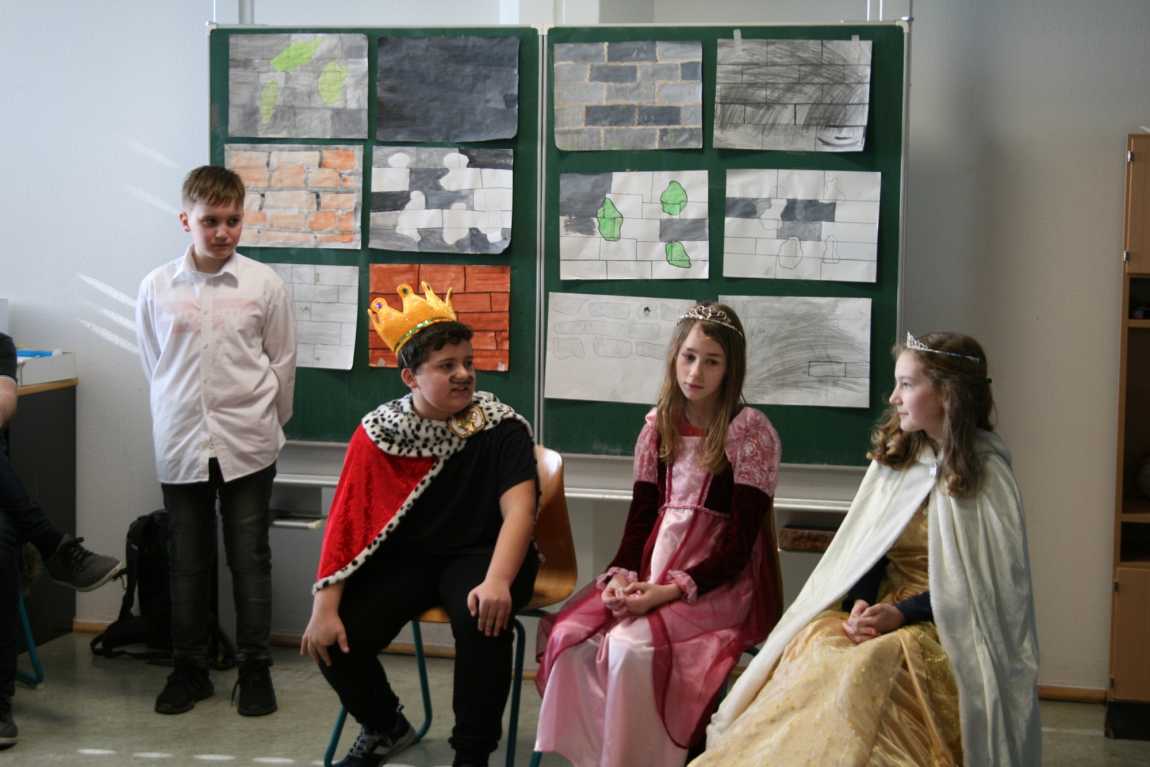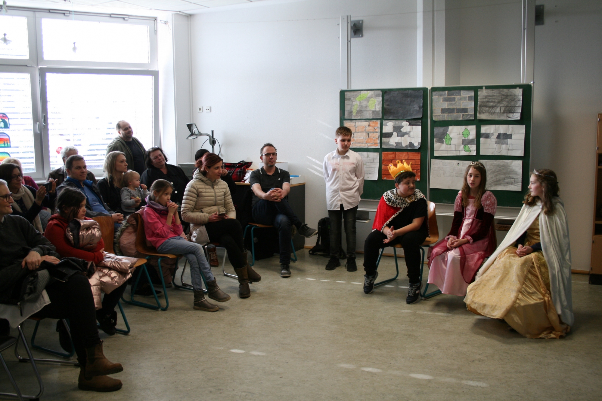 In den Projektwochen zuvor hat die Klasse gemeinsam an dem Theaterstück geprobt, gefeilt, Rollen und Kostüme verteilt und das Bühnenbild gestaltet. Wie toll die Klasse zusammengearbeitet hat konnte man bei der Aufführung sehen.