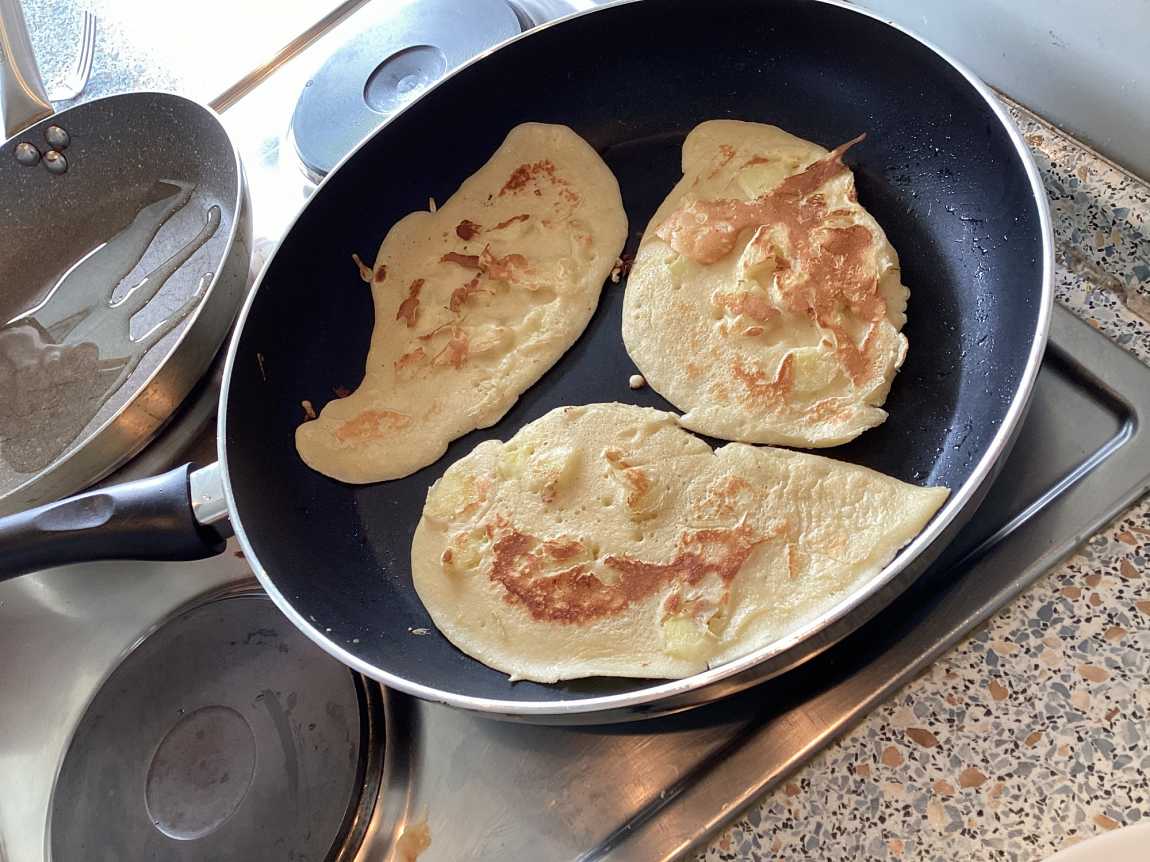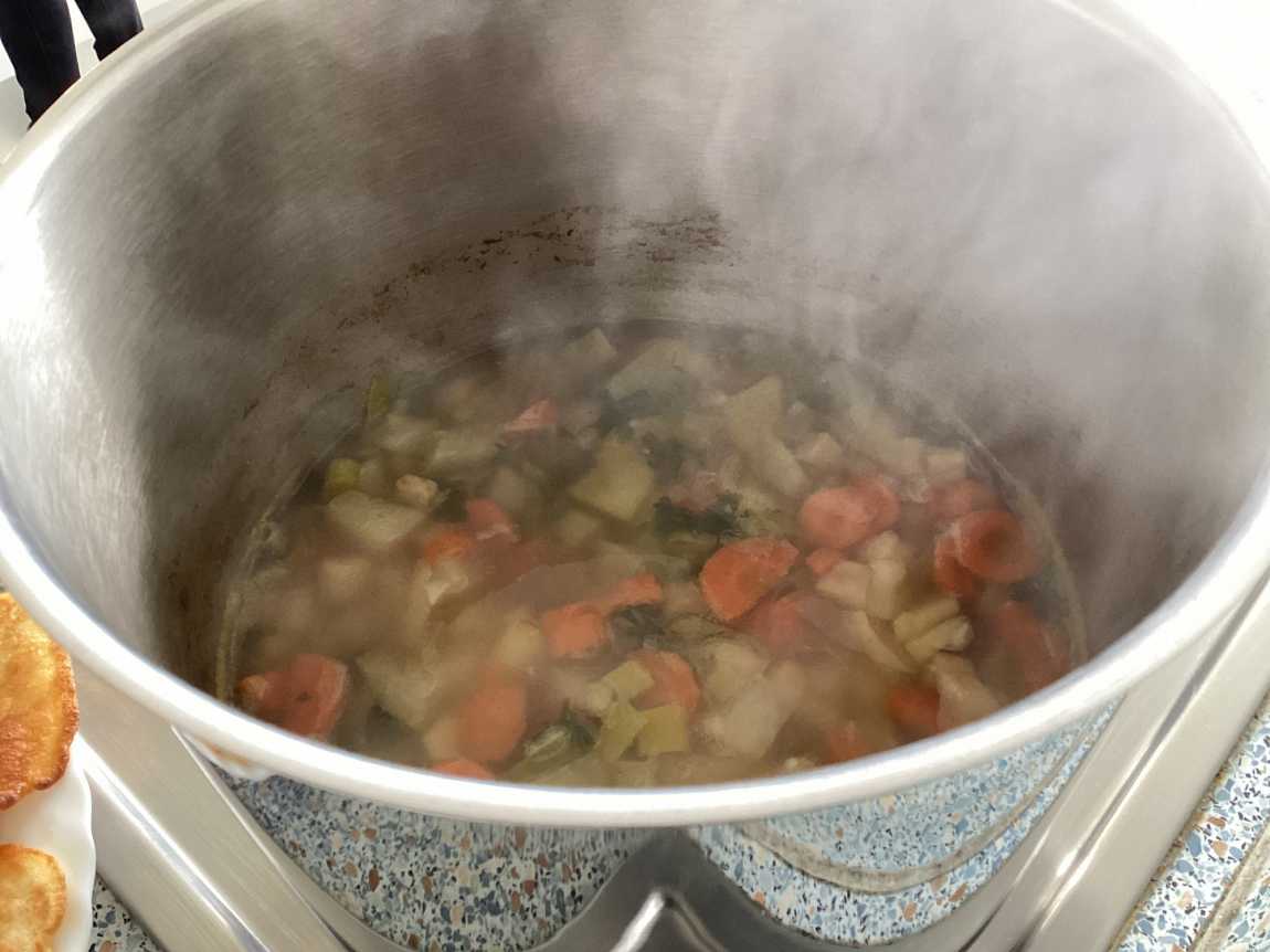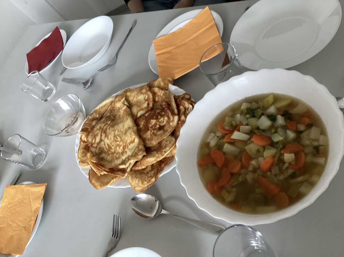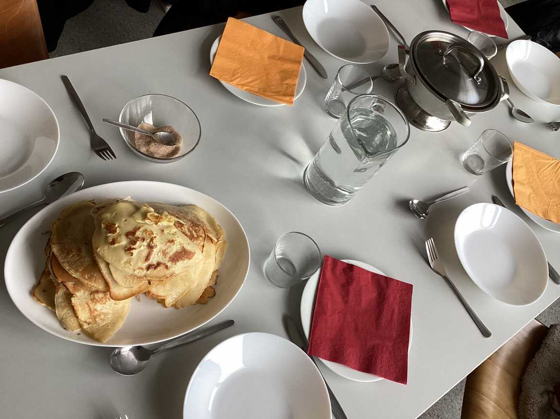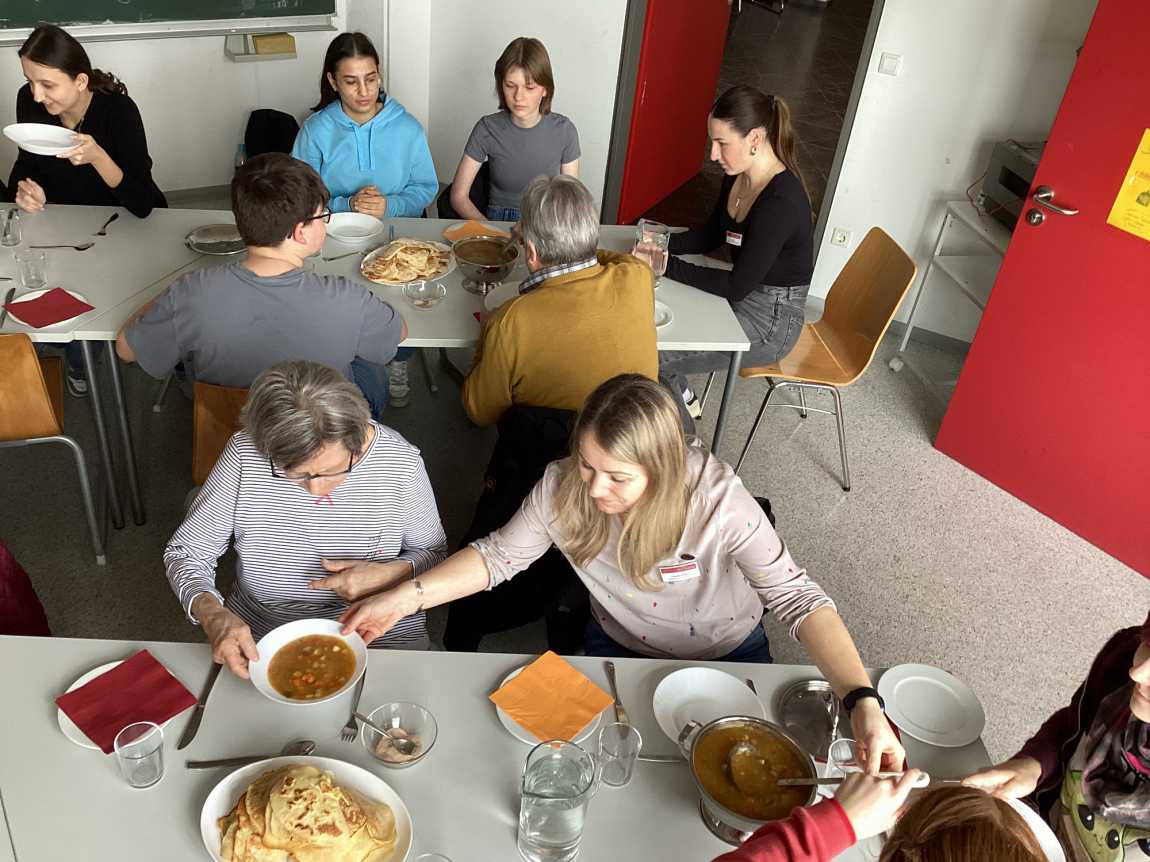 Vier Bewohner des ProSeniore Mutterstadt kamen mit zwei Begleiterinnen um unsere Schüler bei der Zubereitung von Apfelpfannkuchen und Gemüsesuppe den ein oder anderen Trick zu verraten.