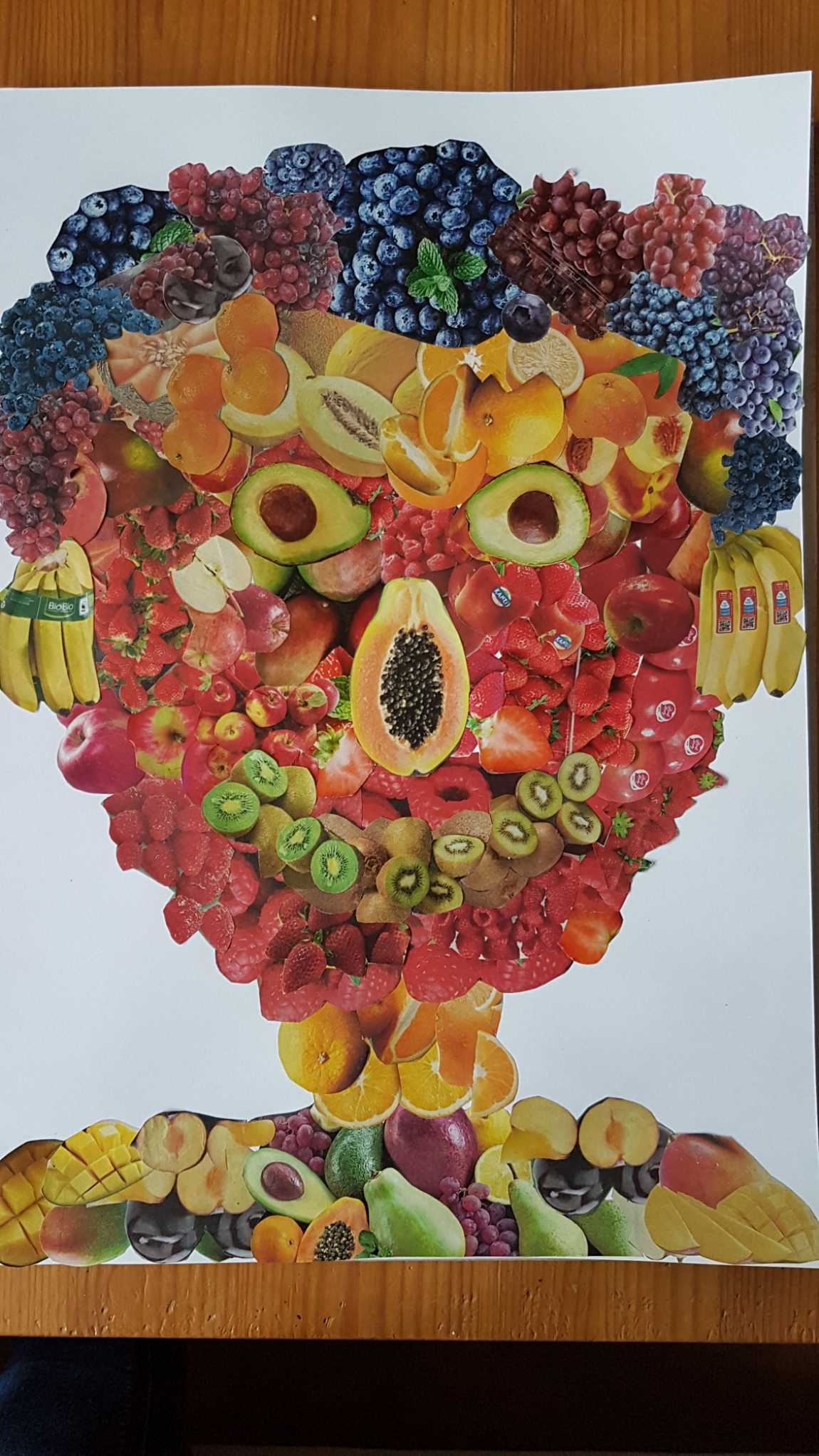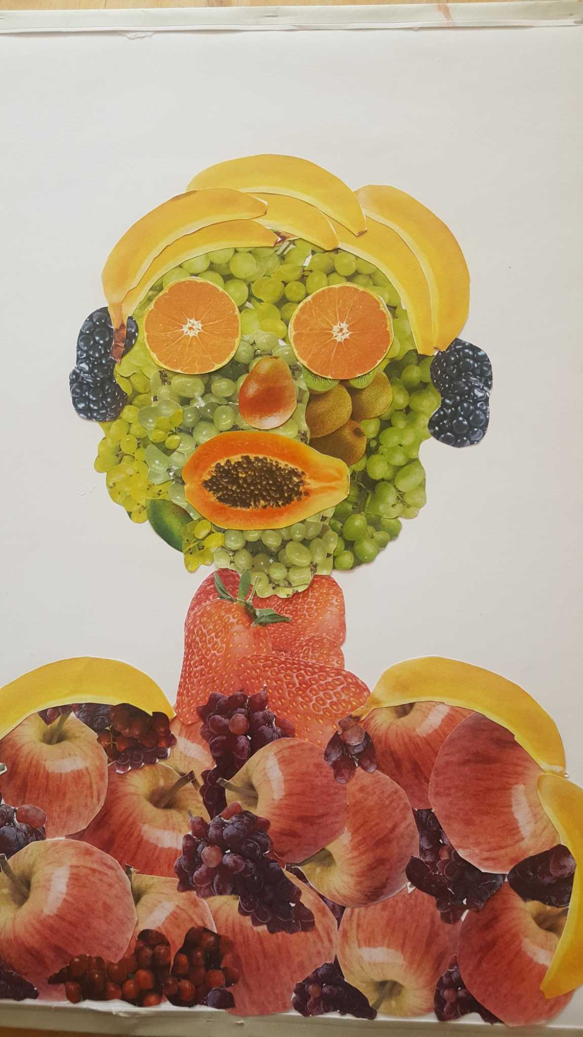 Begleitend zum Projekt „Ernährung und Bewegung“ erstellten die Schüler in der Hausarbeitsphase ein Obst/Gemüseporträt nach Arcimboldo.