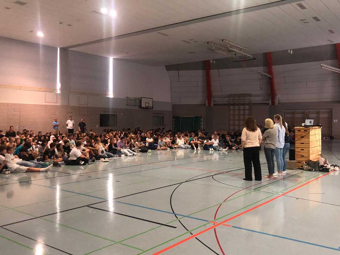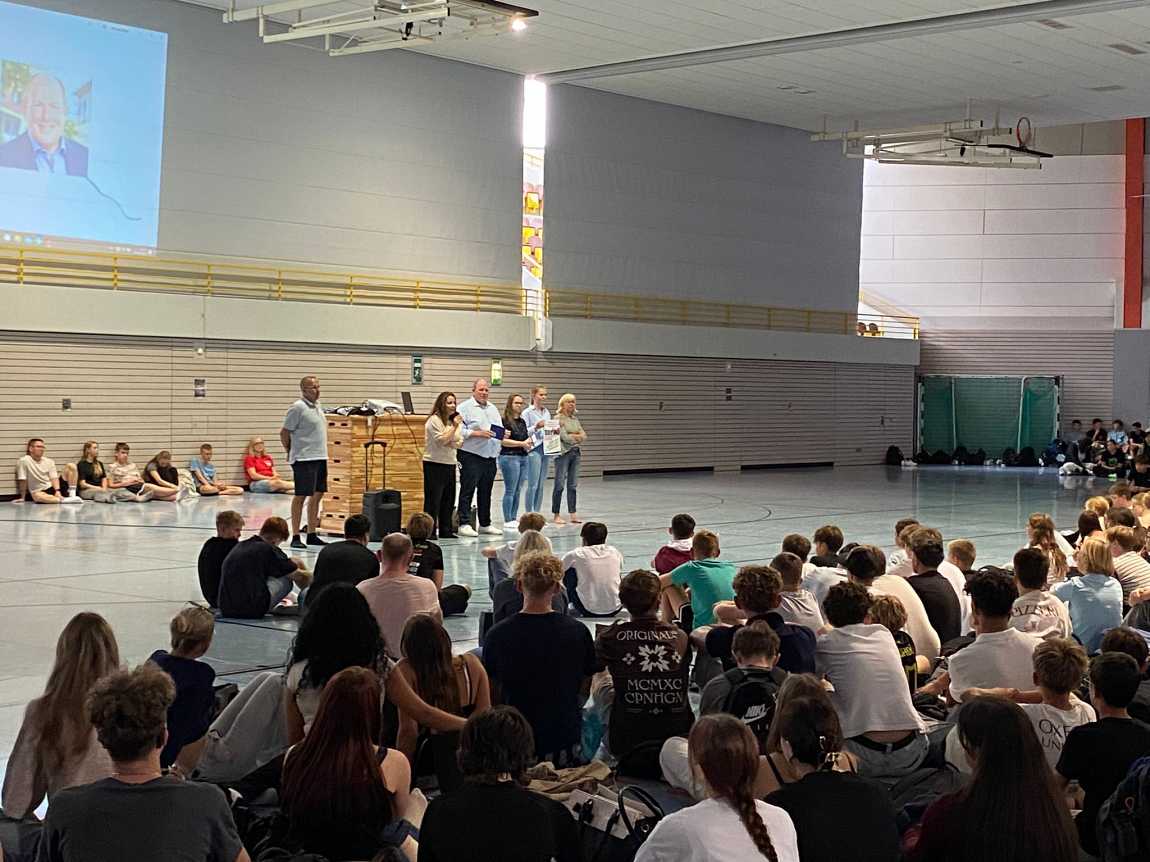 Zu unserer ersten Schulversammlung im Schuljahr 2025/26 durften wir neben unserem neuen Jahrgang Daniel Drache unsere Jahrgänge 6-MSS begrüßen, sowie unsere Gäste Frau Krämer vom Freundeskreis und den Mutterstadter Bügermeister Herrn Leva mit Vertretern aller politischer Parteien aus dem Gemeinderat. Besonders schön, dass ehemalige IGS Schülerinnen nun Teil der Gemeindearbeit sind und unsere Schüler motivieren zur Teilnahme am Jugendgemeinderat von Mutterstadt.