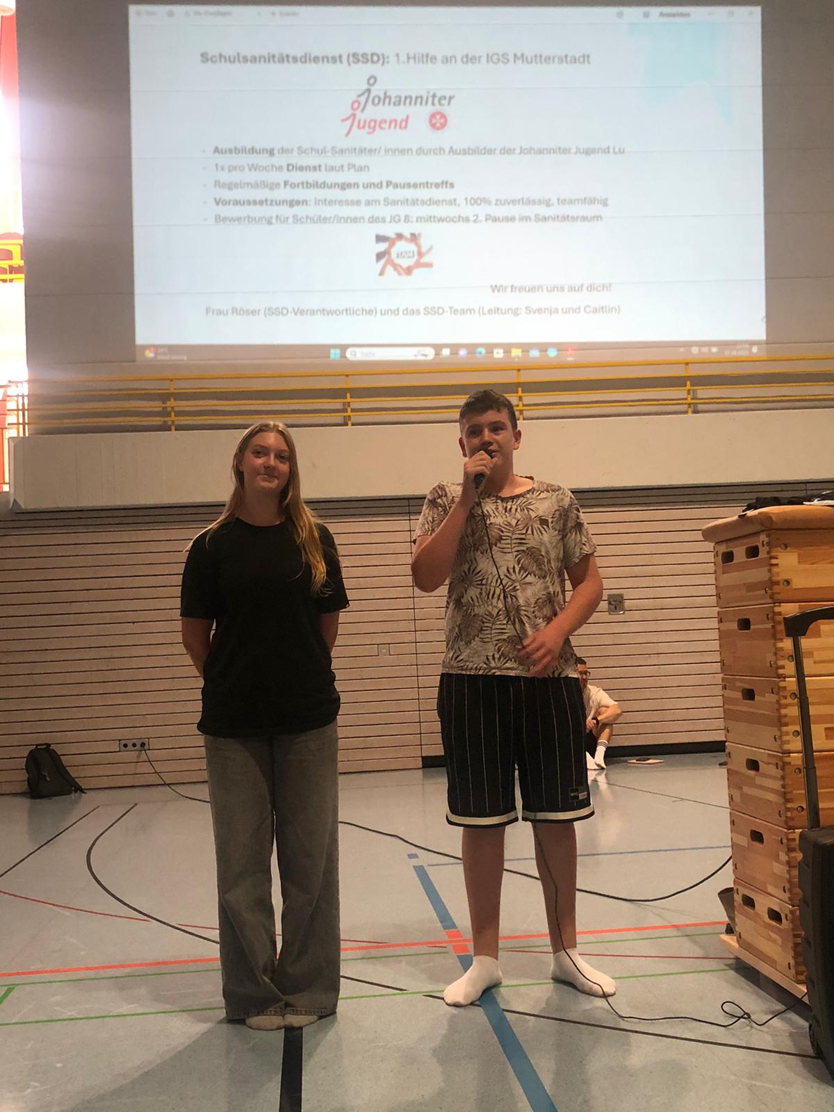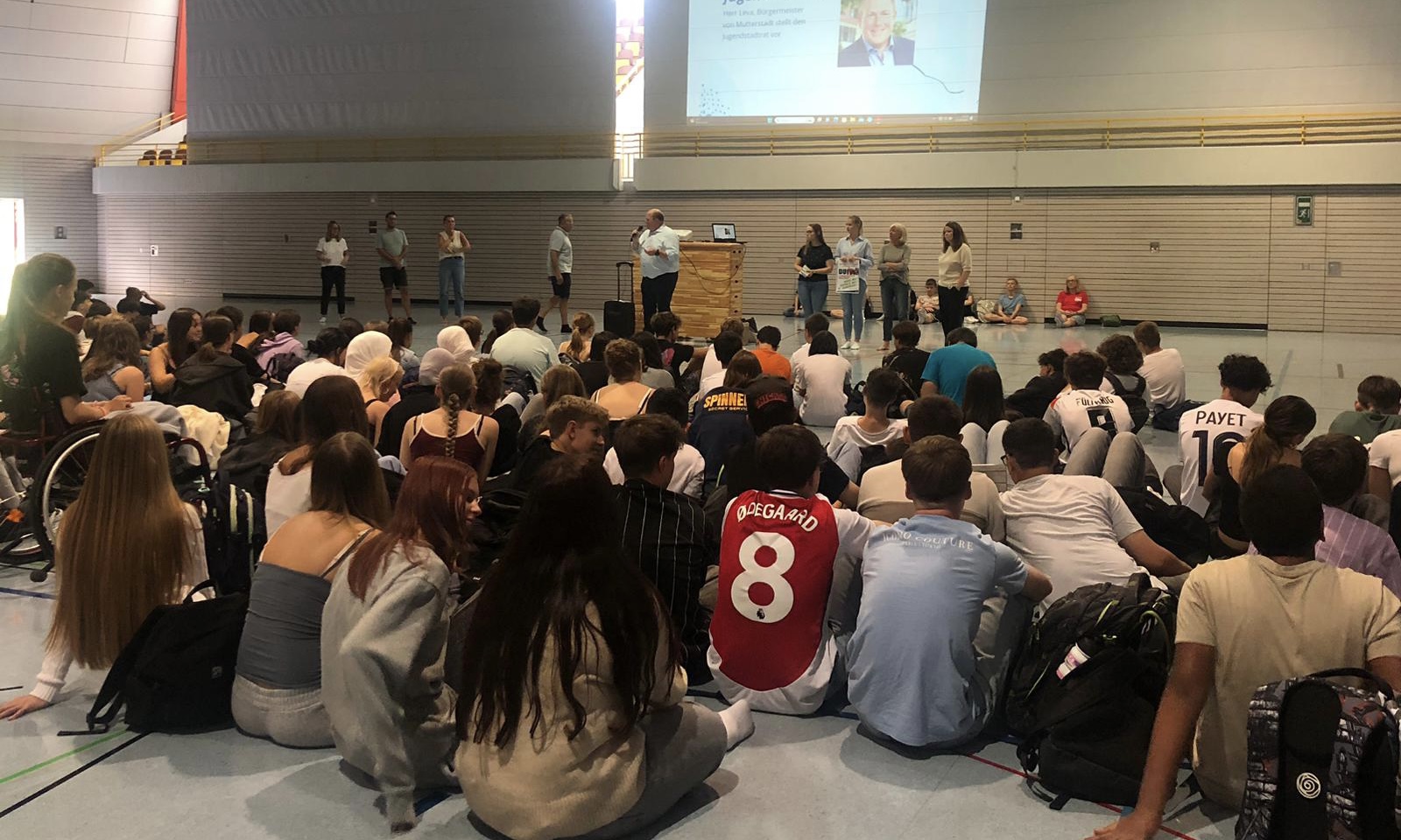 Zu unserer ersten Schulversammlung im Schuljahr 2025/26 durften wir neben unserem neuen Jahrgang Daniel Drache unsere Jahrgänge 6-MSS begrüßen, sowie unsere Gäste Frau Krämer vom Freundeskreis und den Mutterstadter Bügermeister Herrn Leva mit Vertretern aller politischer Parteien aus dem Gemeinderat. Besonders schön, dass ehemalige IGS Schülerinnen nun Teil der Gemeindearbeit sind und unsere Schüler motivieren zur Teilnahme am Jugendgemeinderat von Mutterstadt.