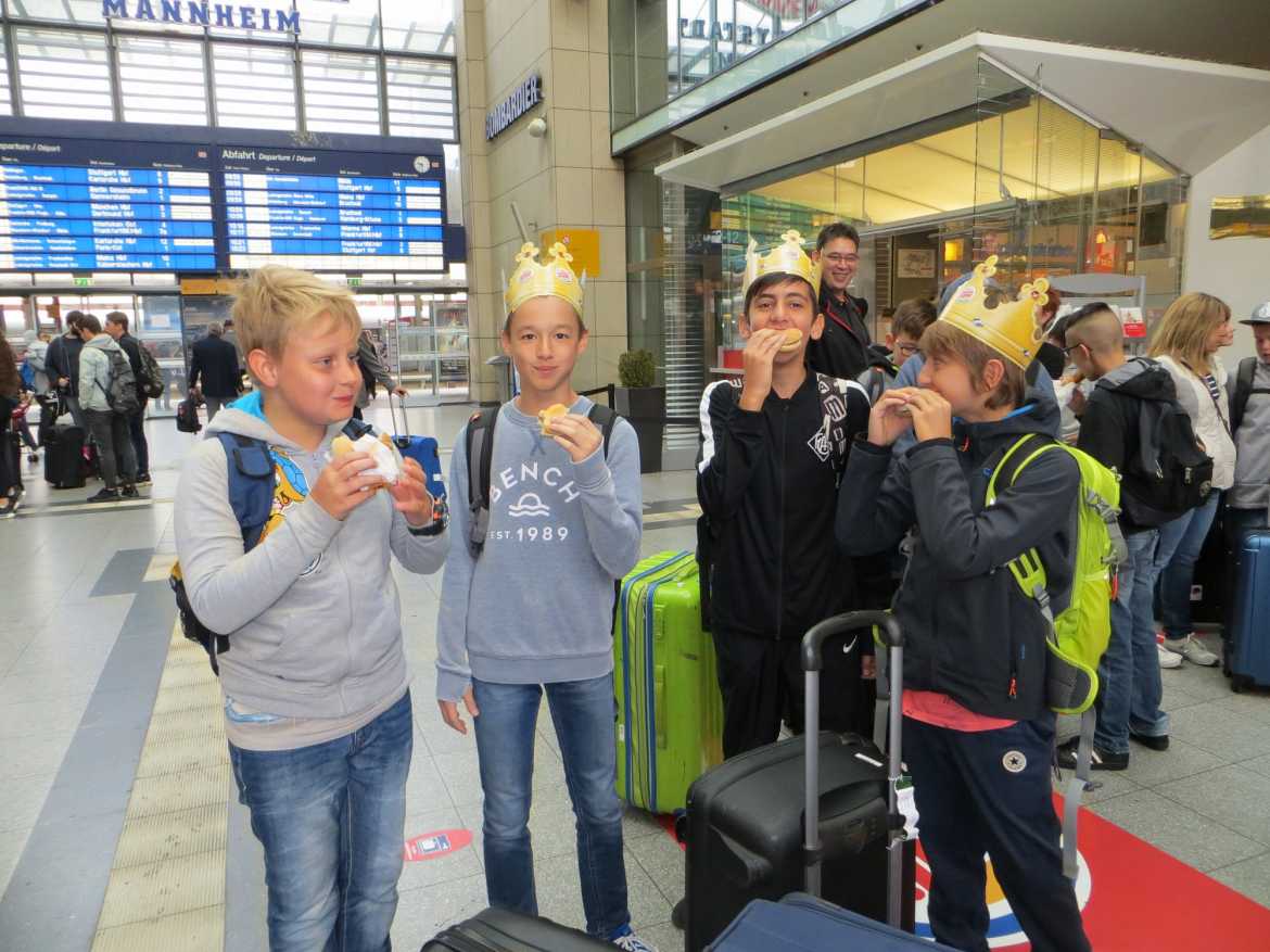 Alle stiegen ein, es gab aber leider nicht für alle Schüler im ersten Zug Platz und schon gar nicht genügend Sitzplätze. Nach einer langen Weile kamen wir am Bahnhof in Mannheim an, die Eltern warteten schon auf uns …