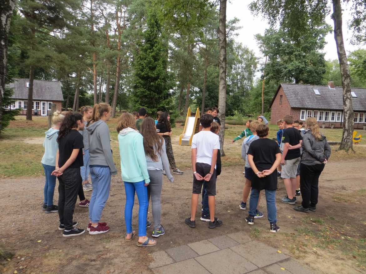 Nachdem wir in den Zug gestiegen sind, mussten wir gleich wieder aufgrund von Zugproblemen in Frankfurt umsteigen. Das war anstrengend mit dem ganzen Gepäck. Irgendwann hatte dann jeder von uns endlich einen Sitzplatz. Die Zugfahrt nach Schneverdingen war sehr lang. Es war zwar cool, weil wir nicht oft mit dem Zug fahren, aber auch langweilig auf der langen Fahrt.