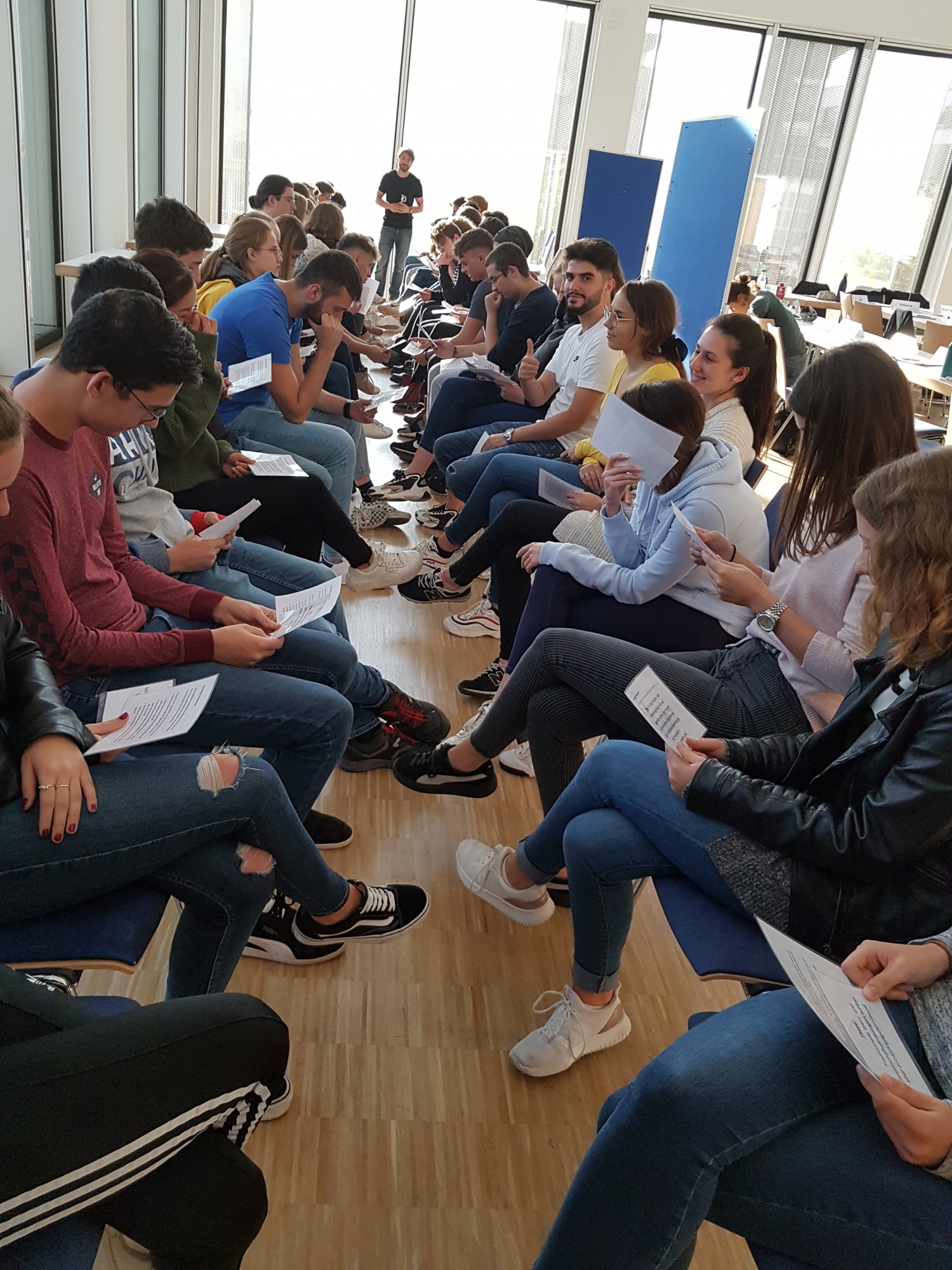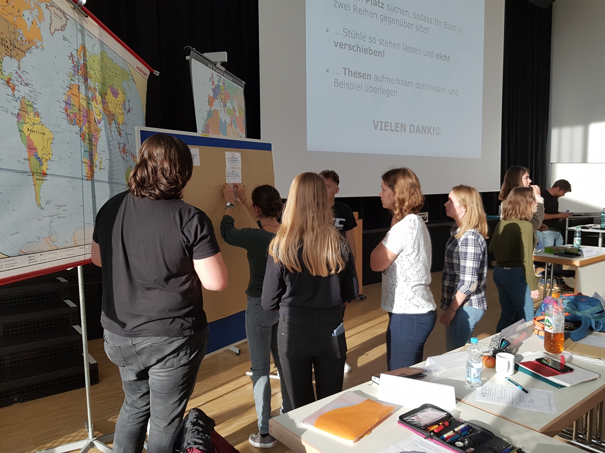 Nach 4 Unterrichtsstunden und einer kurzen Mittagspause fuhr der 13. Jahrgang Ende September zum Seminar „Die Dritte Welt im Spannungsfeld der Globalisierung“ nach Ingelheim, wo noch weitere 2,5 Stunden Unterricht auf uns warteten, die aber dank der interessanten Aufbereitung sehr kurzweilig waren.