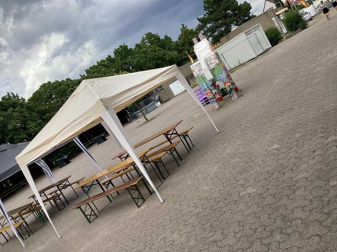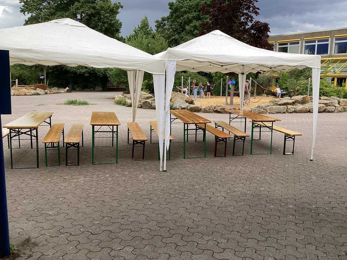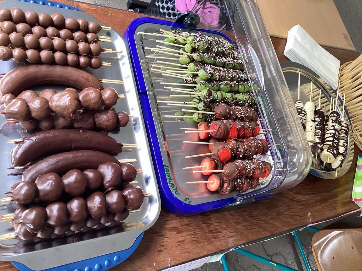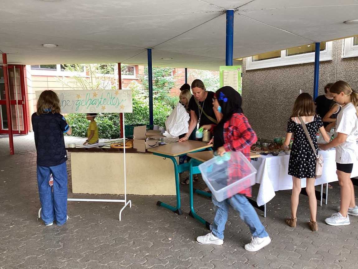 Ein vielfältiges Angebot von Leckereien und Aktivitäten sind auf dem Schulhof zu finden.
