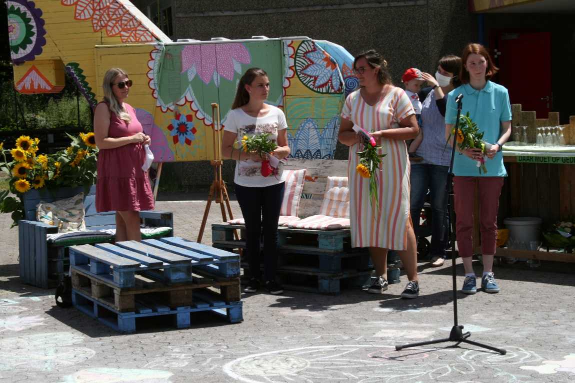 In einer coronaliken Abschlussstunde auf dem Schulhof wurden sie vom Kollegium und ehemaligen Schulleiterinnen unter viel Applaus verabschiedet.