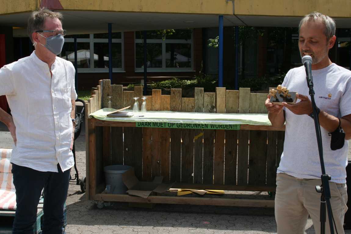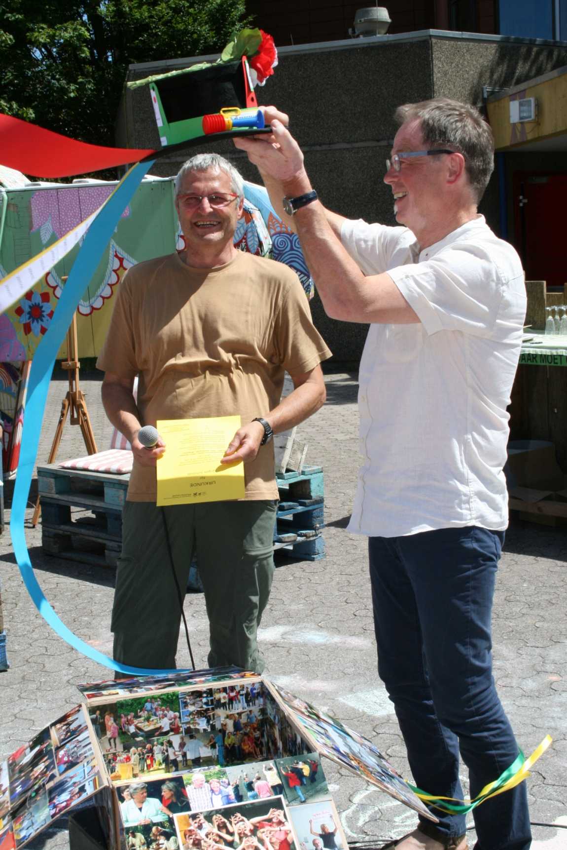 Alfons Otte, Mitbegründer der IGS Mutterstadt, geht nach 27 Jahren und gibt den Hut des Alterspräsidenten an Jürgen Schmidt weiter.