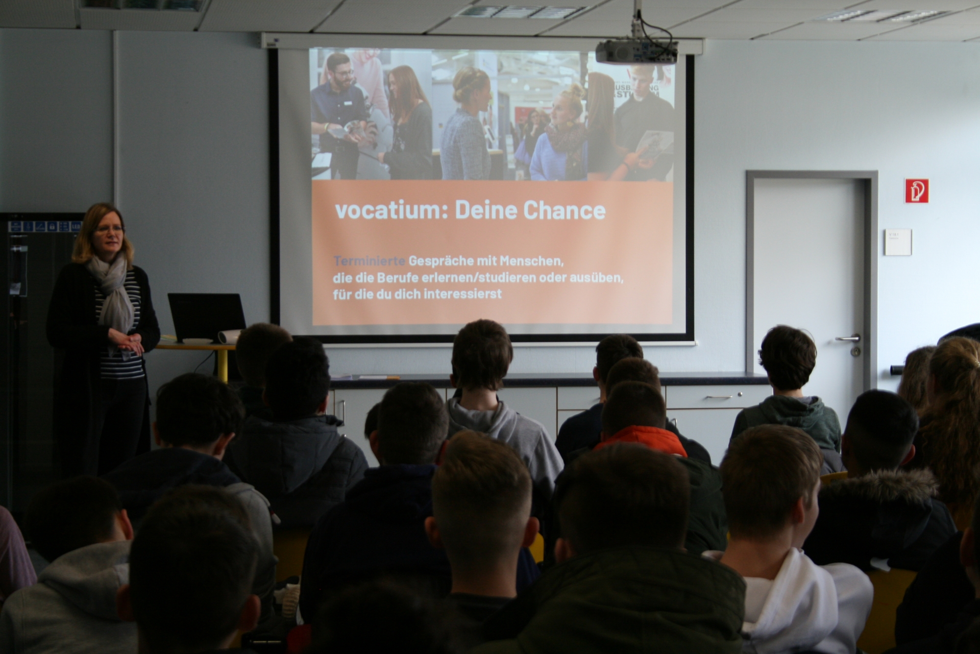 Frau Müller von dem Institut für Talententwicklung GmBH Berlin informierte heute unseren 9er Jahrgang über vocatium, die Fachmesse für Ausbildung und Studium in der Rhein-Neckar Region.
