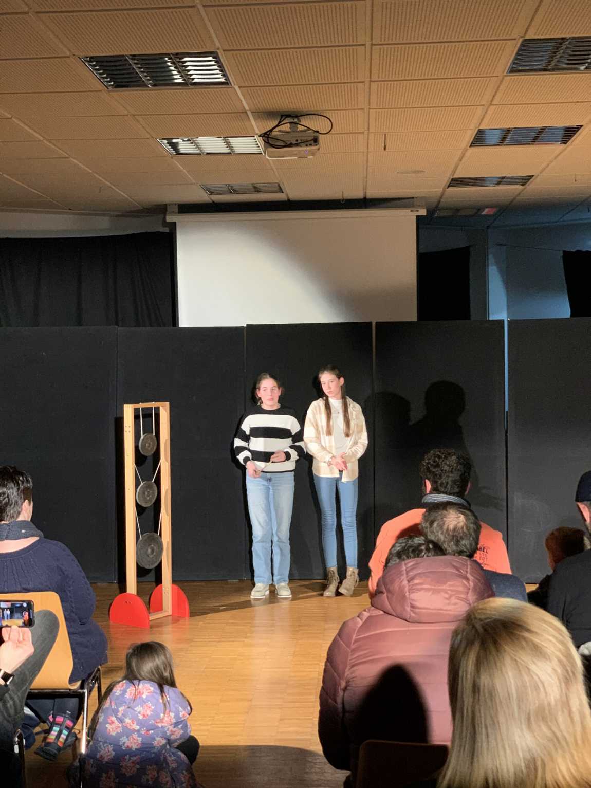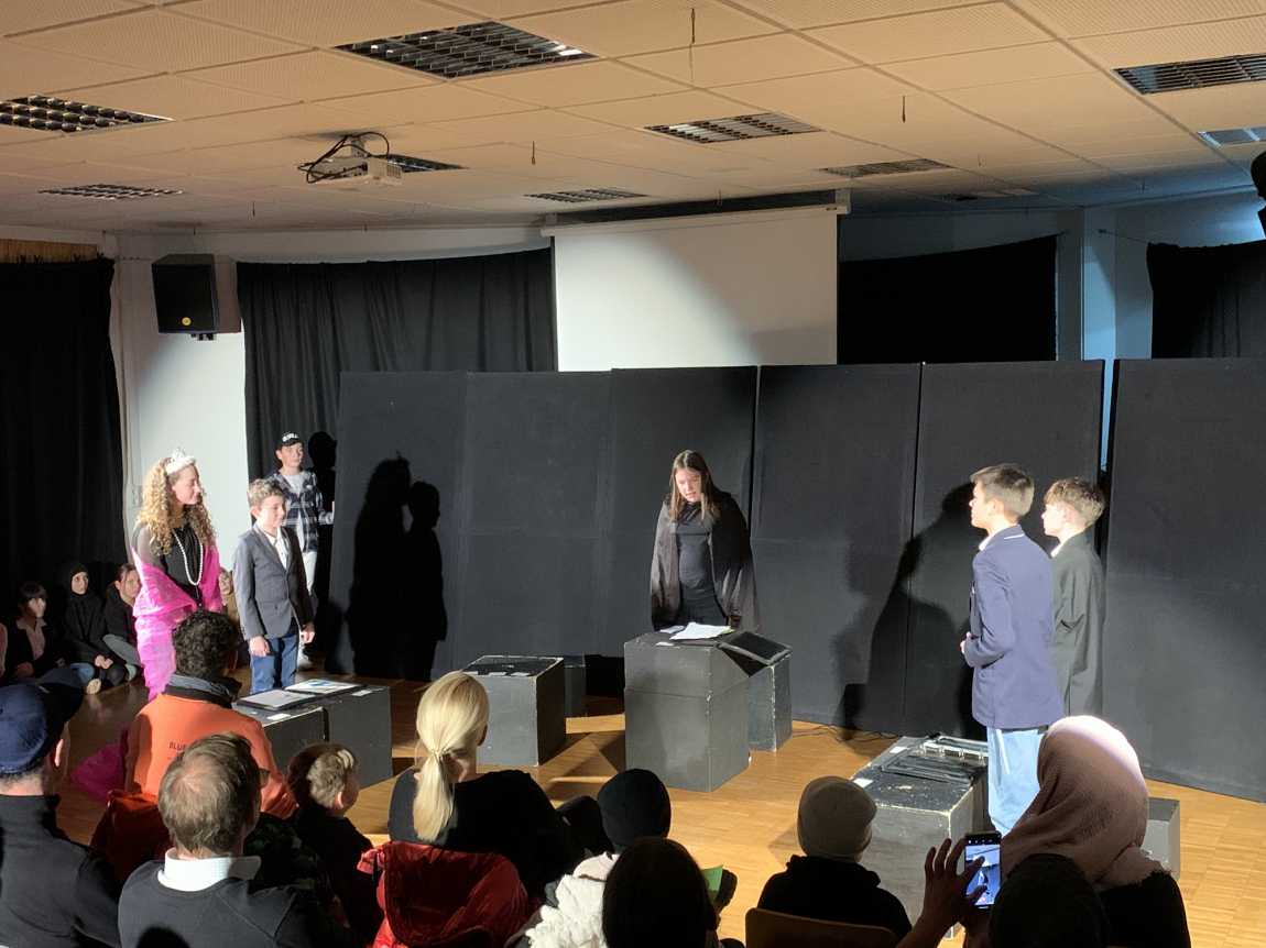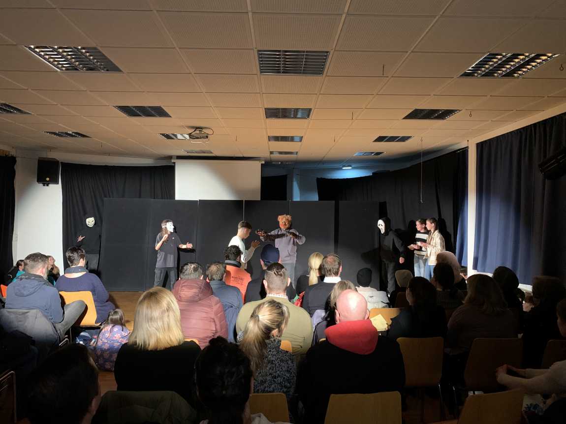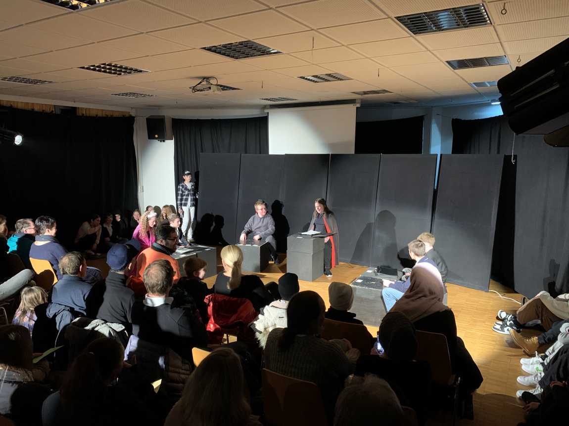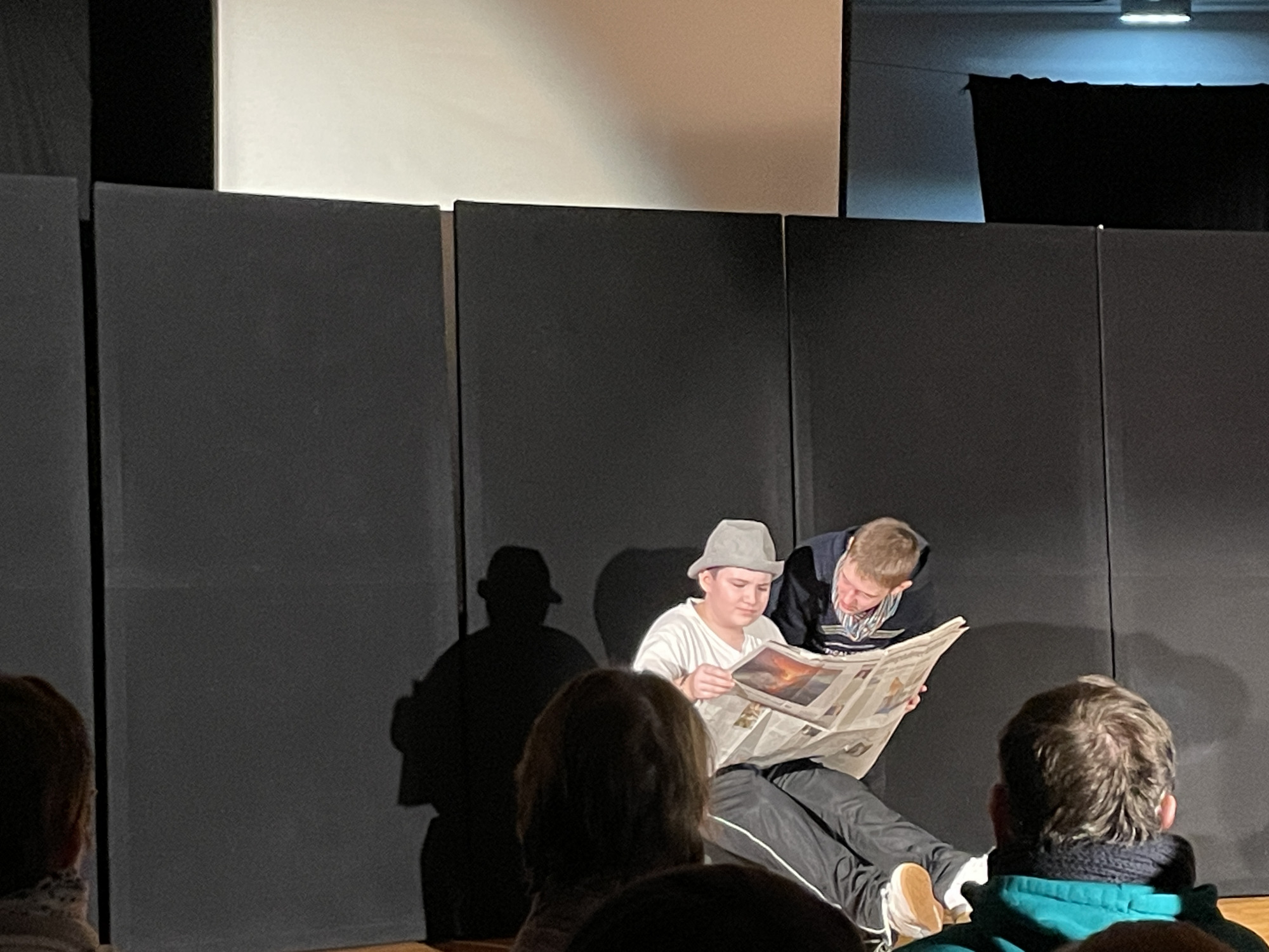 Im Rahmen des Deutschunterrichts im Jahrgang 7 haben die Schüler*innen der 7a unterschiedliche Balladen kennengelernt. Im Verlauf des Unterrichts kam die Idee zu einem Balladenabend auf. Unter dem Motto „Von Herrschern, Helden und Halunken“ präsentierten alle Schüler*innen der Klasse 7a eine Auswahl von Balladenvorträgen und szenischen Umsetzungen, so wurde z.B. die Ballade „Der Handschuh“ von Friedrich Schiller in Jugend- sprache übersetz und eine eigene Ballade zum Untergang der Titanic vorgetragen. Ein Quiz im Format der Sendung „Wer wird Millionär“ rundete den Abend ab. Trotz des eisigen Wetters sind überraschend viele Zuschauer*innen erschienen. Der DS-Saal war bis auf den letzten Platz belegt. Fazit: Ein gelungenes Klassenevent für alle Anwesenden.