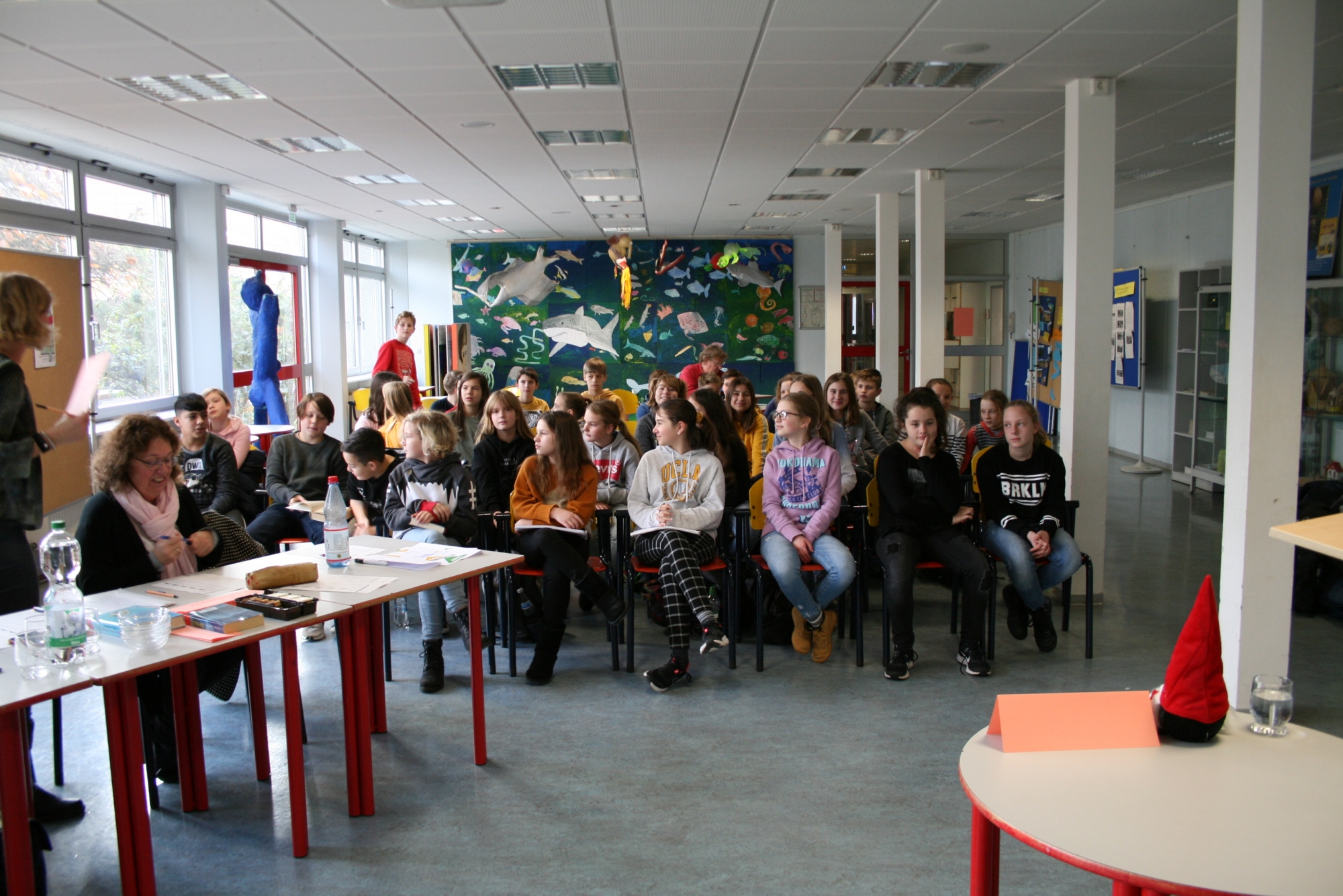 Im Anschluss daran mussten sie einen nicht vorbereiteten Text aus dem Buch „Schattengreifer“ von Stefan Gemmel, der uns im Frühjahr besuchte, vorlesen.