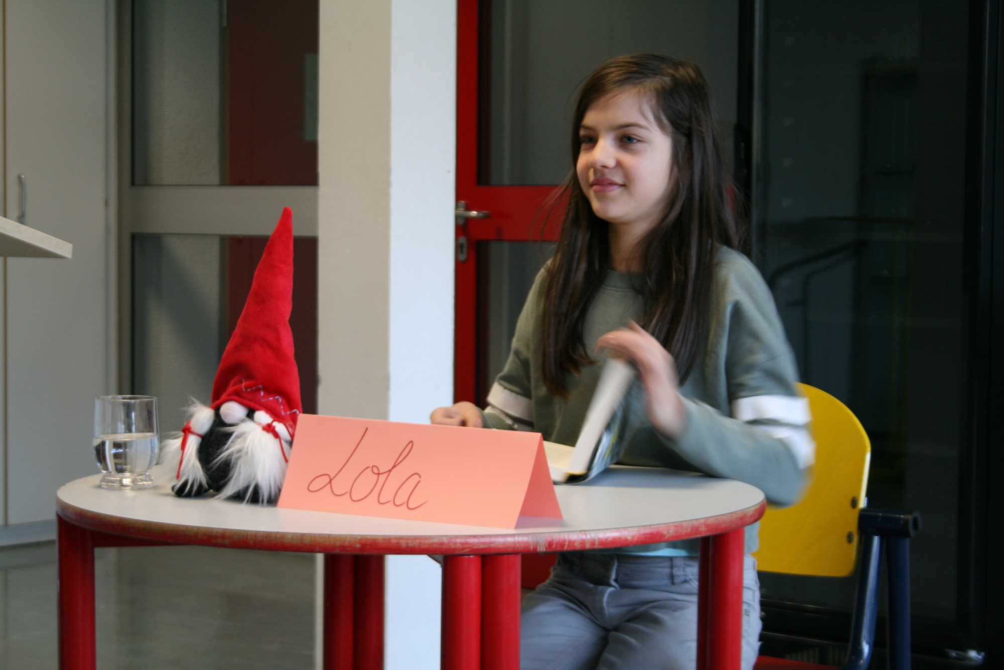 Besonders beim Wahltext bestachen viele Schüler durch ihre Lesesicherheit und Interpretation. Schwieriger wurde es beim Fremdtext. Diese souverän gelöste Herausforderung verbunden mit der sehr guten Leistung beim Wahltext machte Lola Hochgesang aus der 6a zur unumstrittenen Schulsiegerin!