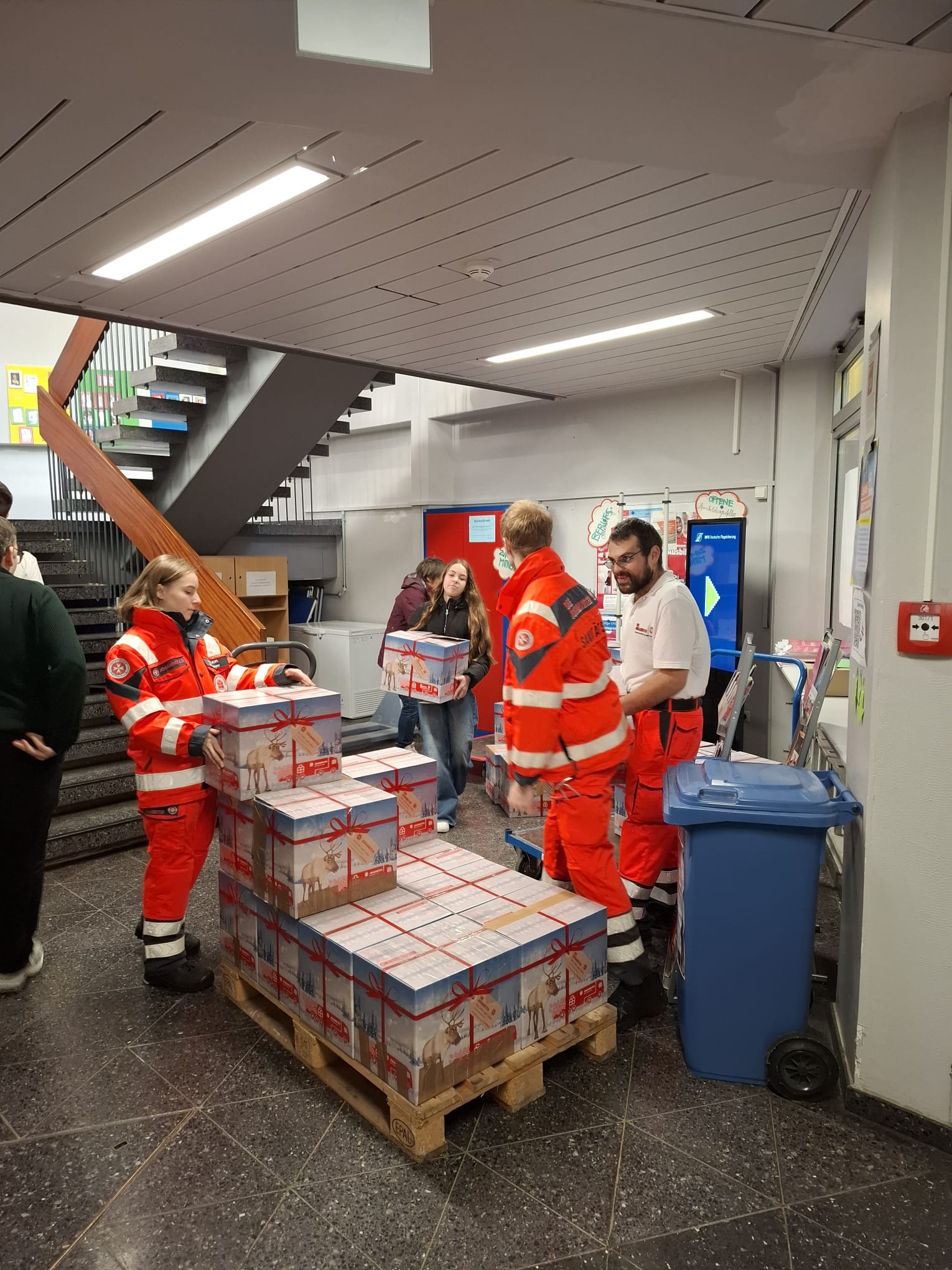 Wir konnten heute 32 Pakete verladen, die durch die Johanniter an Bedürftige in Osteuropa und in Deutschland verteilt werden.
