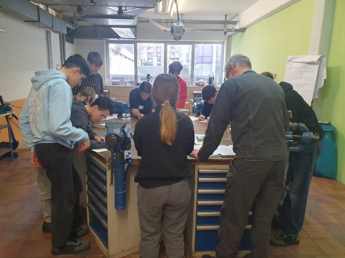 Immer zwei Klassen besuchen gleichzeitig die Werkstätten der Geniefabrik in Ludwigshafen. Dort erhalten die Schülerinnen und Schüler jeweils einige Tage lang einen Einblick in eines von mehreren Gewerken: