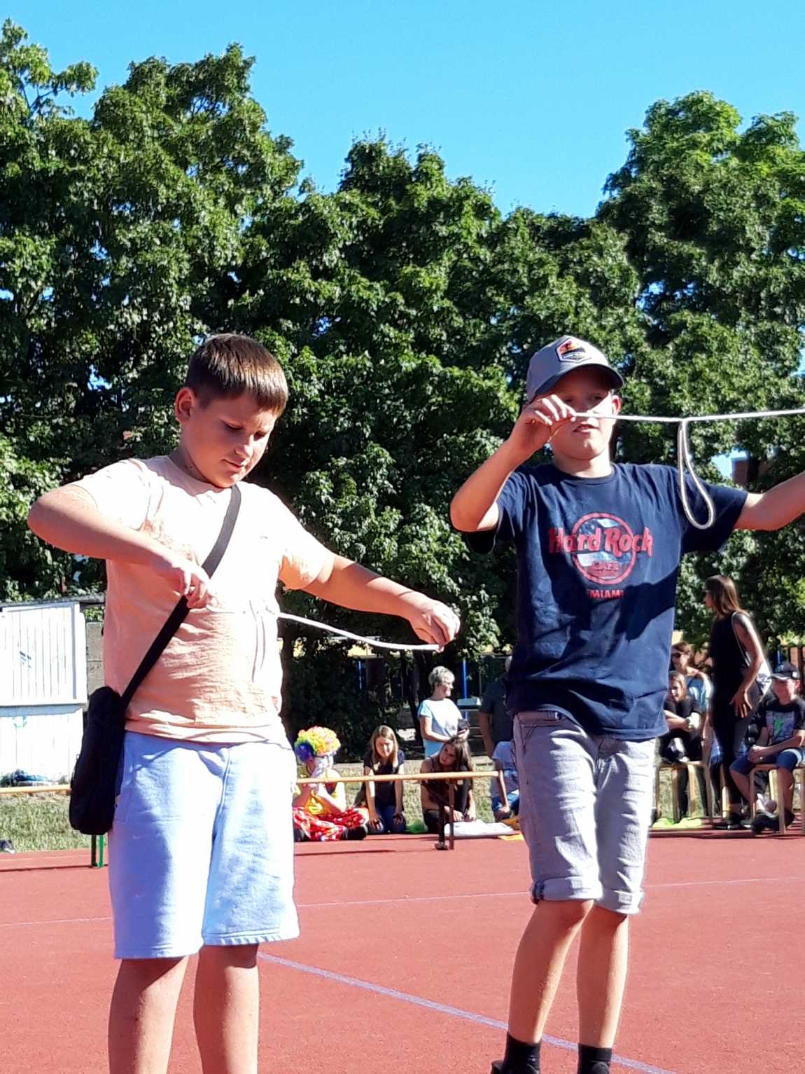 Freitagnachmittag war dann zunächst die Generalprobe und um 17 Uhr war die Manege frei (alias der Sportplatz) und bei schönstem Wetter konnte die Aufführung beginnen. Beim anschließenden gemeinsamen Elterngrillen konnte der Tag ausklingen.