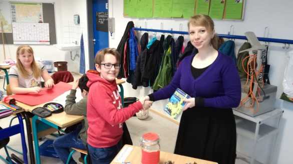 Die Sieger/innen erhielten nicht nur einen Buchpreis zur Anerkennung ihres Sieges, sie werden im Mai auch von der Volkshochschule nach Maxdorf eingeladen, wo sie im Namen der IGS Mutterstadt gegen weitere Schülerinnen und Schüler antreten werden. Wir wünschen Leonard und Julia, dass sie dort unter den Gewinnern sind.