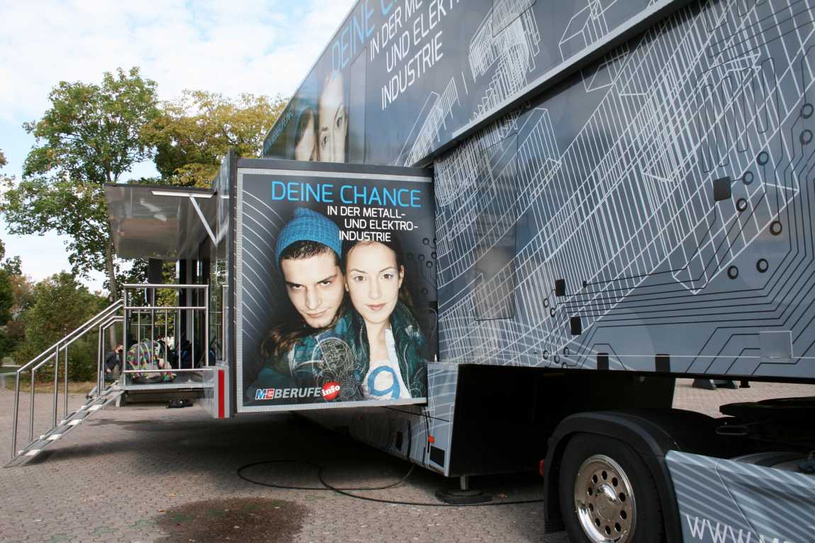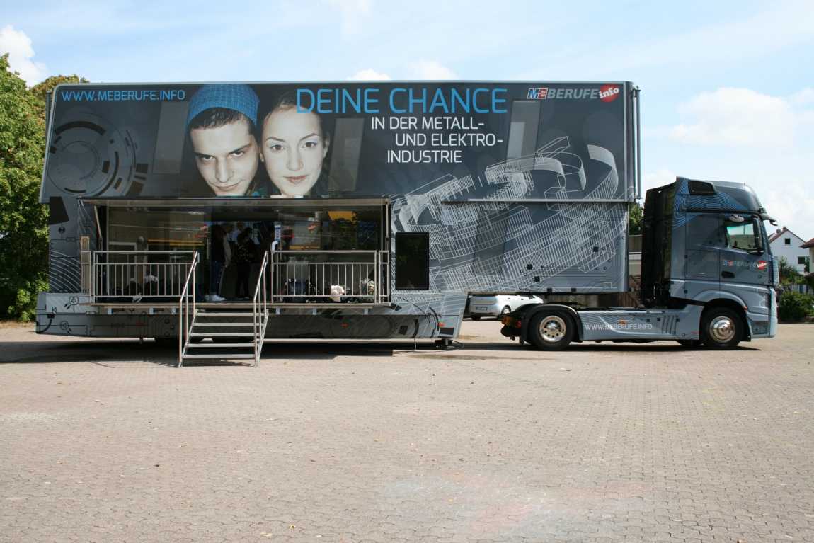 Regelmäßiger Besuch des MT-Trucks auf dem Schulhof für die Jahrgänge 8-10 innerhalb des Projektes Berufsorientierung.