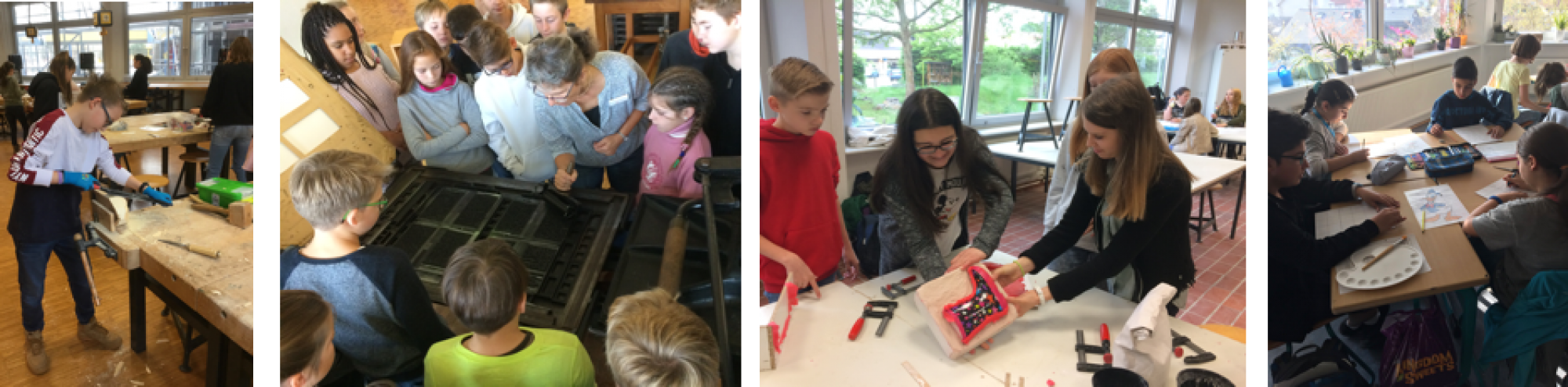 In Klasse 5 und 6 haben die Kinder zwei Kunststunden pro Woche. Von Klasse 7-10 haben die Kinder regulär eine Kunststunde pro Woche, allerdings besteht ab dem zweiten Halbjahr der Klasse 6 die Möglichkeit, das Wahlpflichtfach Kunsthandwerk mit künstlerischem Schwerpunkt zu wählen. Die Kinder haben dann in diesem Fach vier Wochenstunden. Es handelt sich dabei um ein Hauptfach. Also jede Menge Zeit kreativ zu gestalten, mit neuen Materialien und Techniken zu experimentieren und sich auch theoretisch mit Künstlern, Epochen, Werkstoffen und Techniken auseinander zu setzen! Selbstverständlich beinhaltet der Unterricht auch regelmäßige Museumsbesuche, insbesondere mit dem Wilhelm-Hack-Museum besteht eine regemäßige Kooperation.