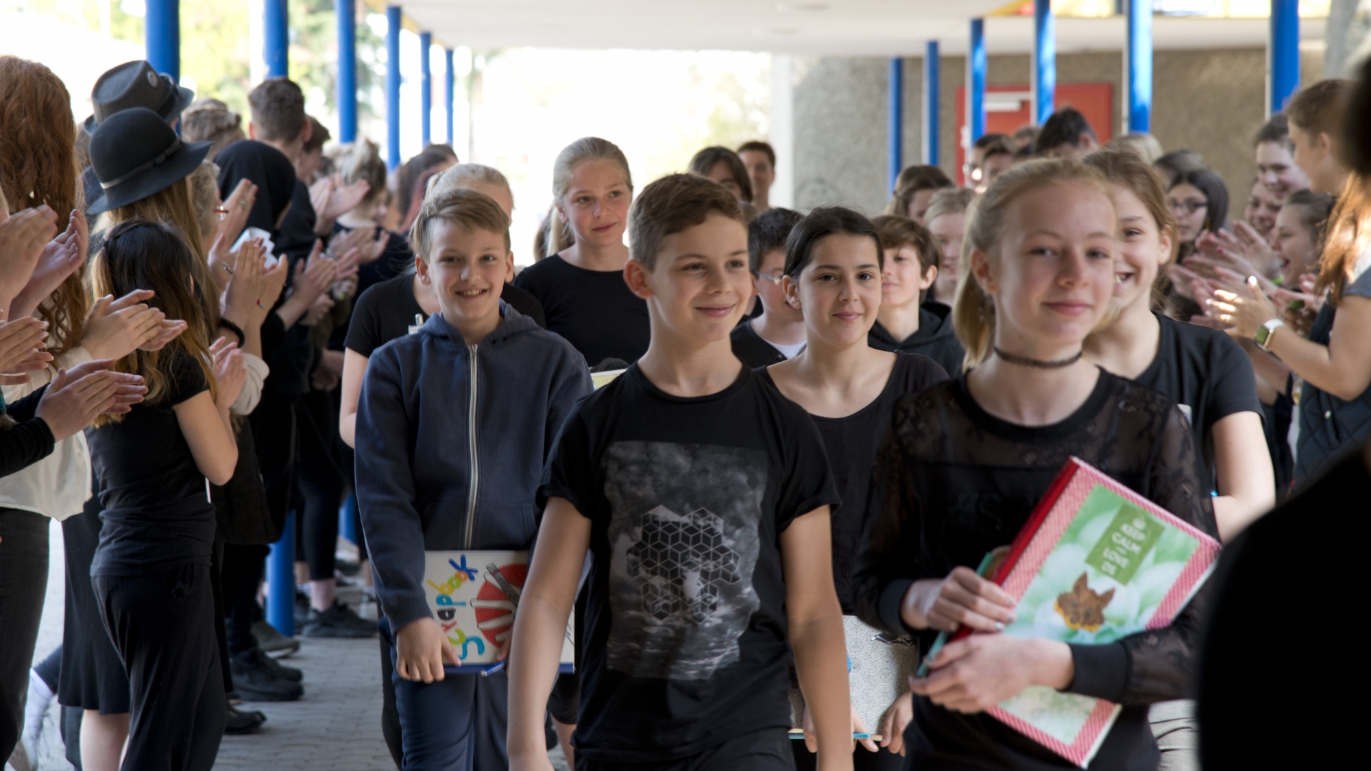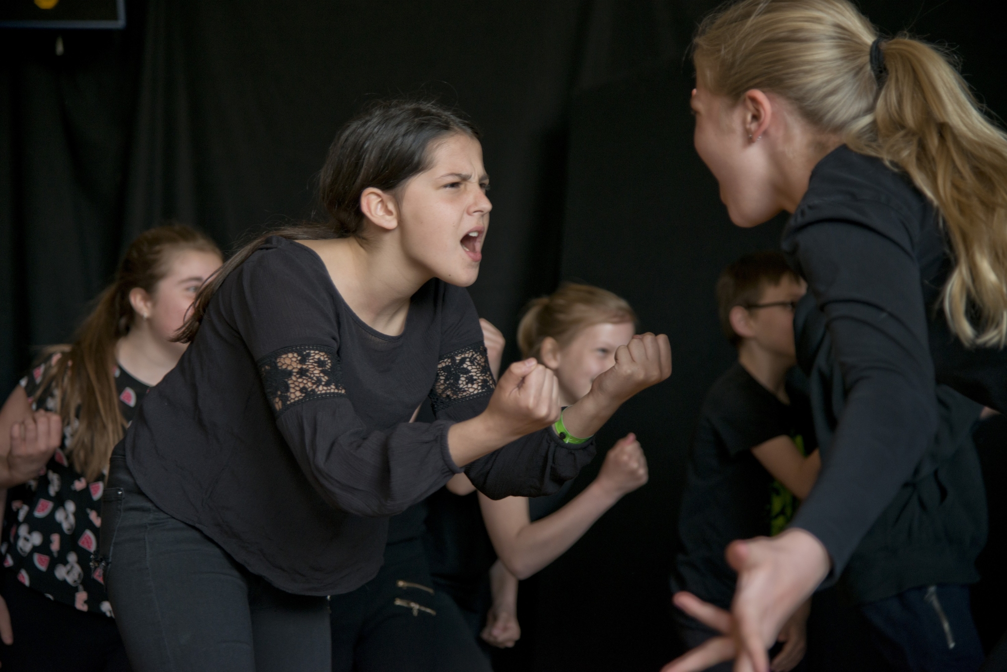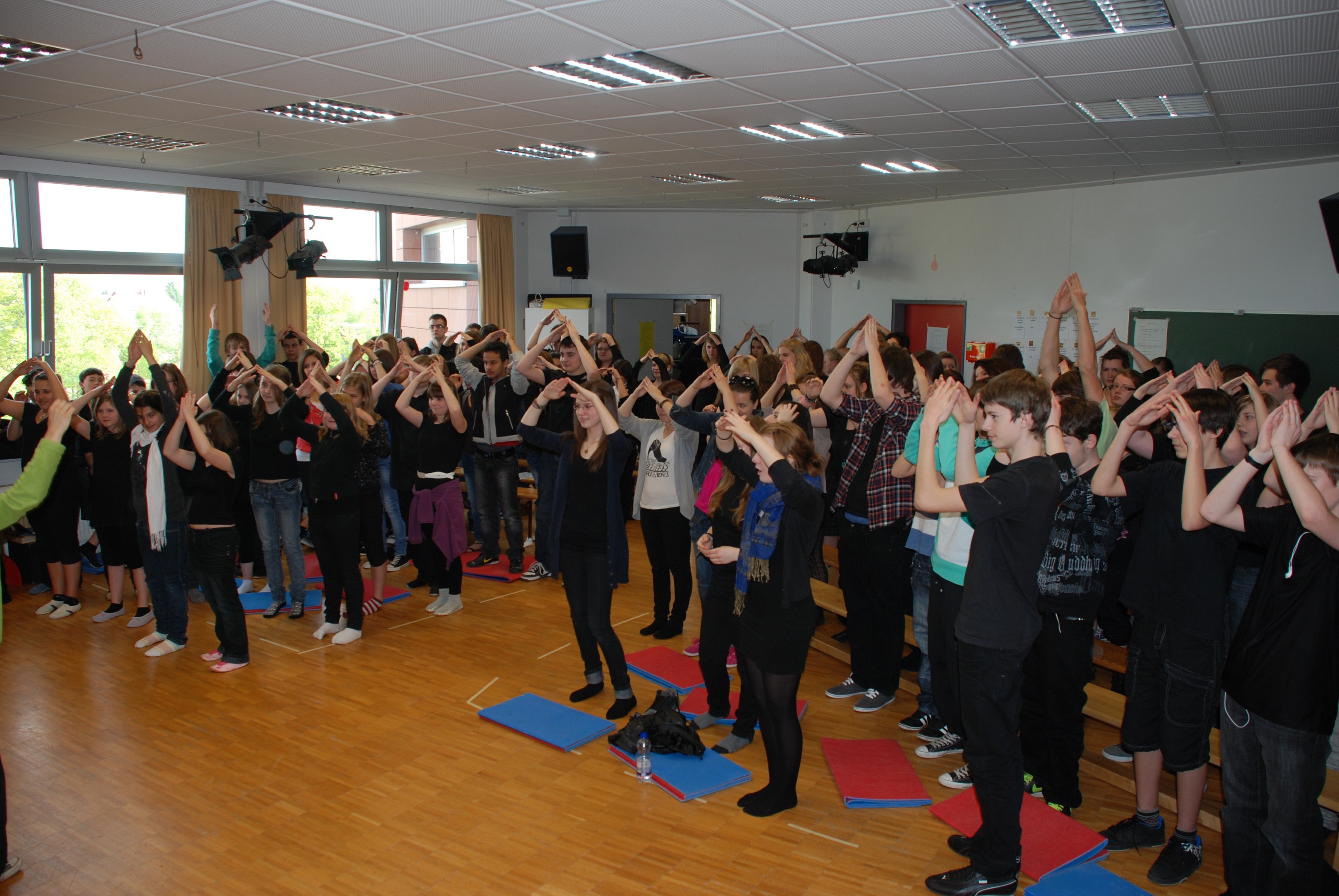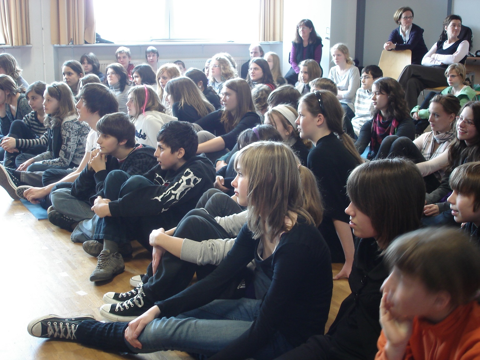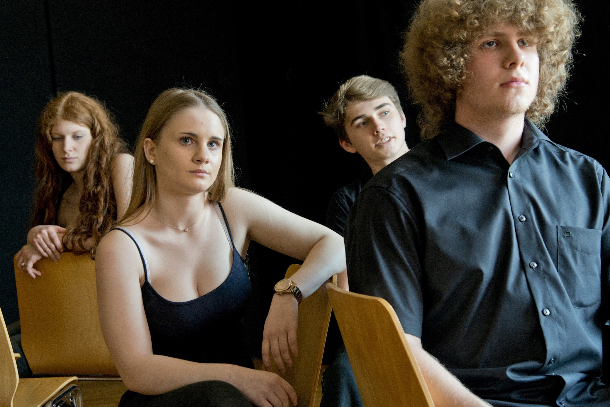 Über verschiedene Spiele, Übungen und kleinere szenische Darstellungen lernt die Gruppe sich in der 6. Klasse intensiver kennen und gegenseitig (zu) vertrauen. Im Verlauf der 7. Klasse folgen erste szenische Kleinprodukte zu schülerorientierten Themen. Die Gruppe reift zu einem spielfähigen Ensemble heran.