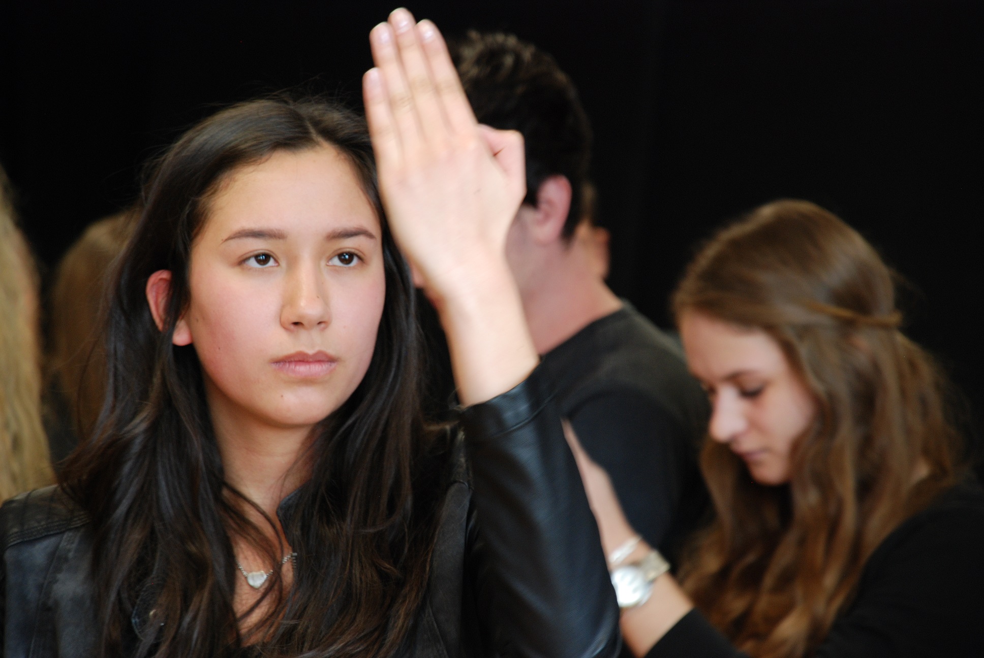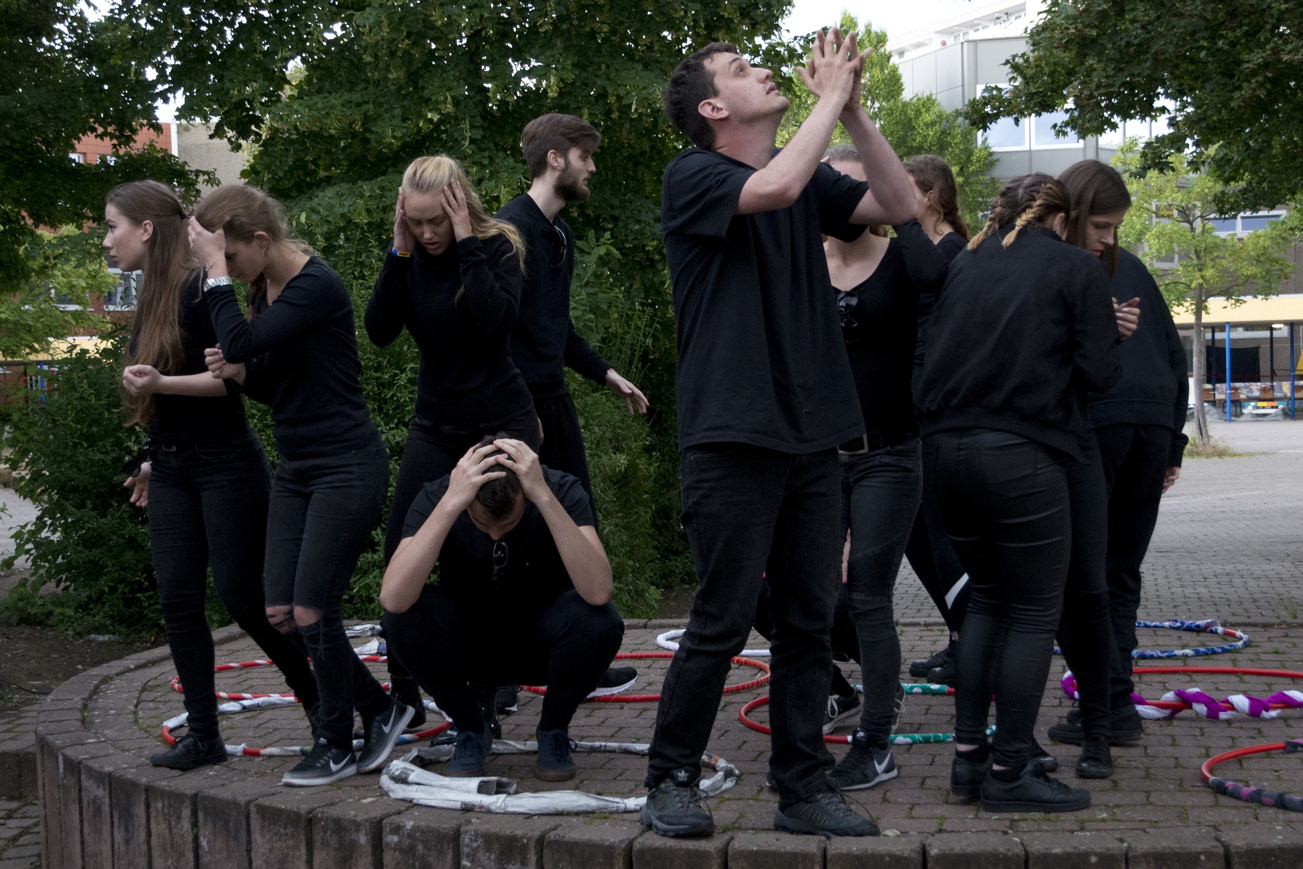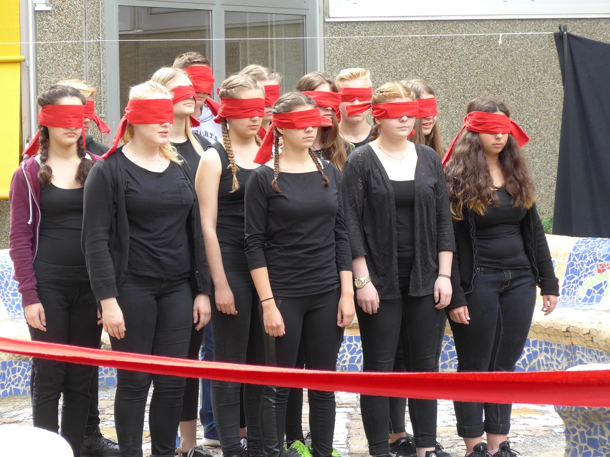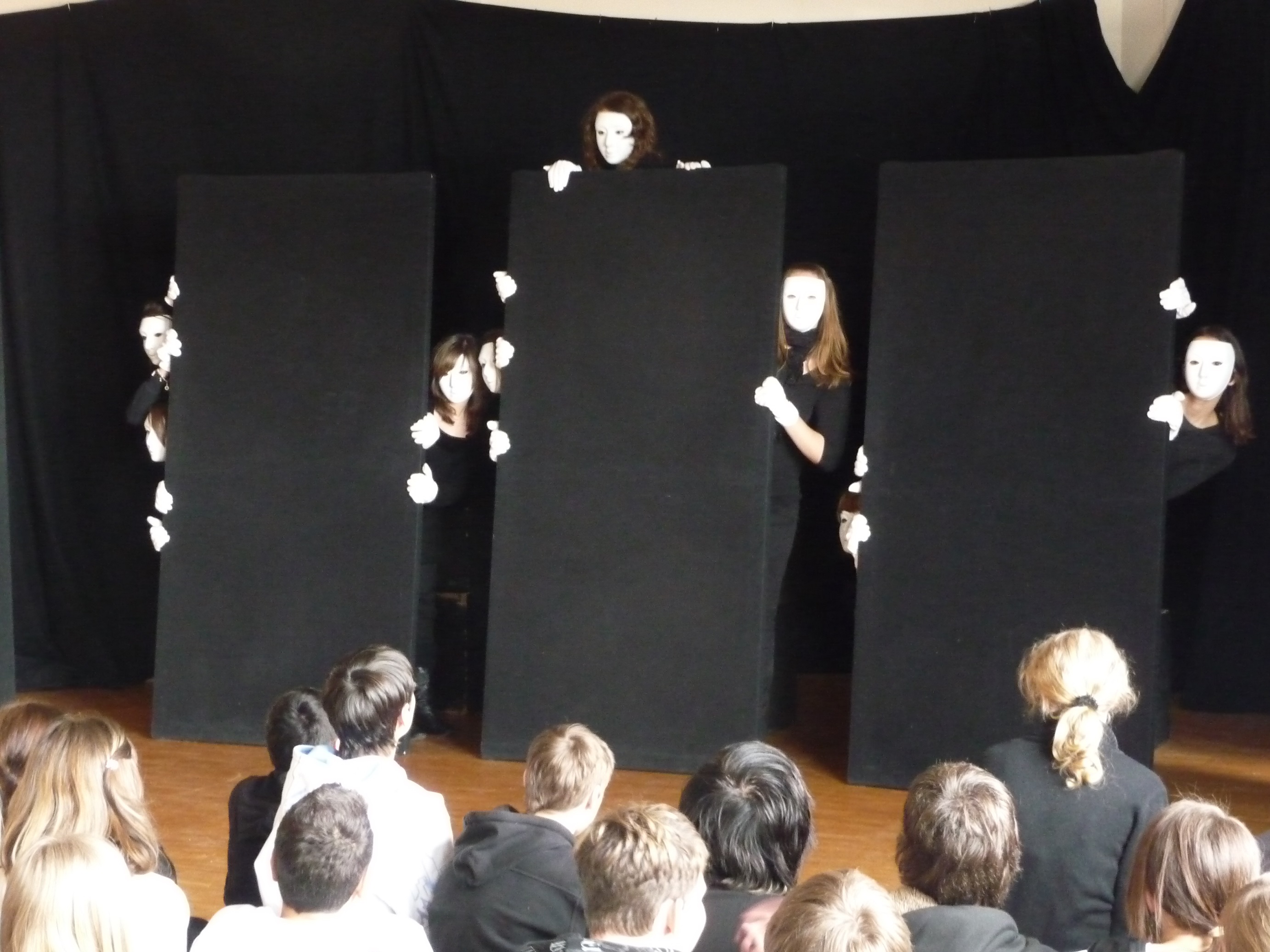 Wer Lust und Interesse am gemeinsamen Spielen in der Gruppe oder am Theaterspielen hat, ist genau richtig im Wahlpflichtfach Darstellendes Spiel. Offen sein, mit sich und seinem Körper zu arbeiten, gemeinsam mit anderen in der Gruppe szenische Ergebnisse mit den verschiedenen Elementen des Theaters zu entwickeln und Spielergebnisse in der Schulöffentlichkeit zu präsentieren, sind nur einige Ziele, die dieses Fach beinhalten.